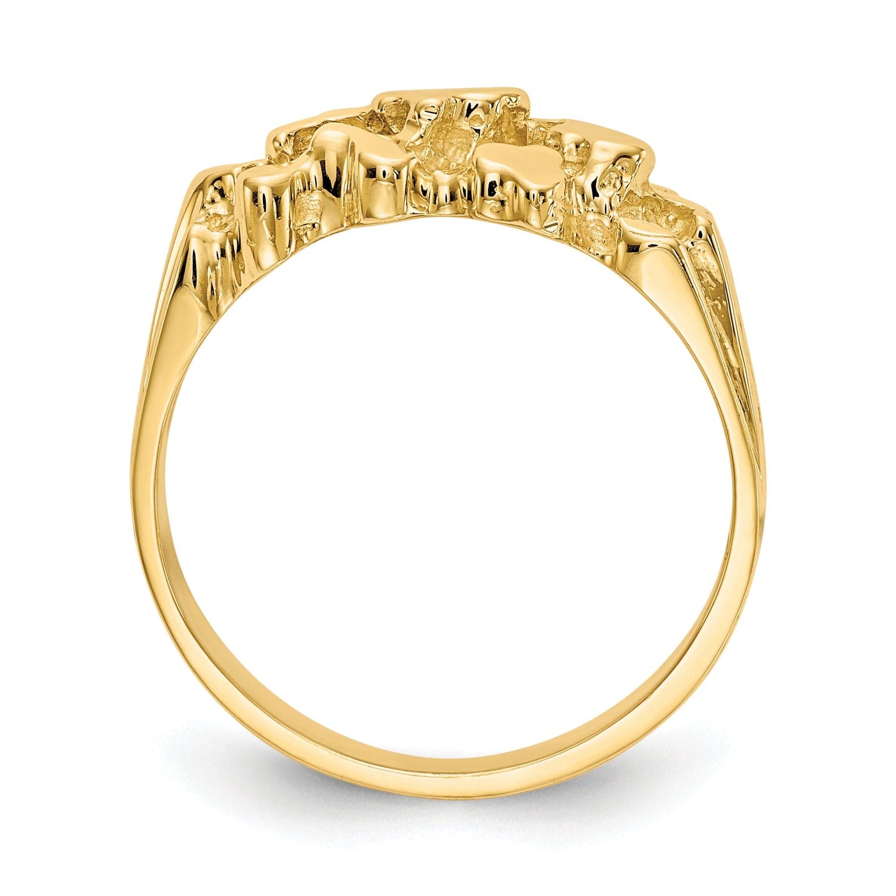 טבעת זו היא תוספת רב-תכליתית לכל אוסף תכשיטים, מושלמת להשלמת כל לבוש מהיום ללילה. הצג אמירה נועזת והוסף נגיעה של אלגנטיות למראה שלך עם טבעת נאגט מוצק מזהב צהוב 14K יוצאת הדופן הזו.