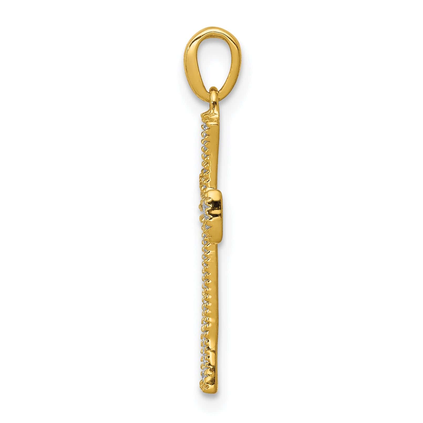 अपने अंदाज को निखारें हमारे उत्कृष्ट 14K पीले सोने के हीरे से बने कलात्मक डिज़ाइन वाले क्रॉस पेंडेंट के साथ। ठोस 14K पीले सोने से निर्मित और पूर्णता तक पॉलिश किया गया, यह मनमोहक पेंडेंट 22 चमकदार हीरों को प्रदर्शित करता है, जिनका कुल वजन 1/10 कैरेट है, जो एक अनूठे कलात्मक डिज़ाइन में सजाए गए हैं। मात्र 0.57 ग्राम वजन और 31.2 मिमी लंबाई तथा 15.3 मिमी चौड़ाई के साथ, यह पेंडेंट हल्का और आकर्षक दोनों है। इसका परिष्कृत बॉल इसकी शोभा बढ़ाता है, जो इसे किसी भी अवसर के लिए एक आदर्श आभूषण बनाता है।