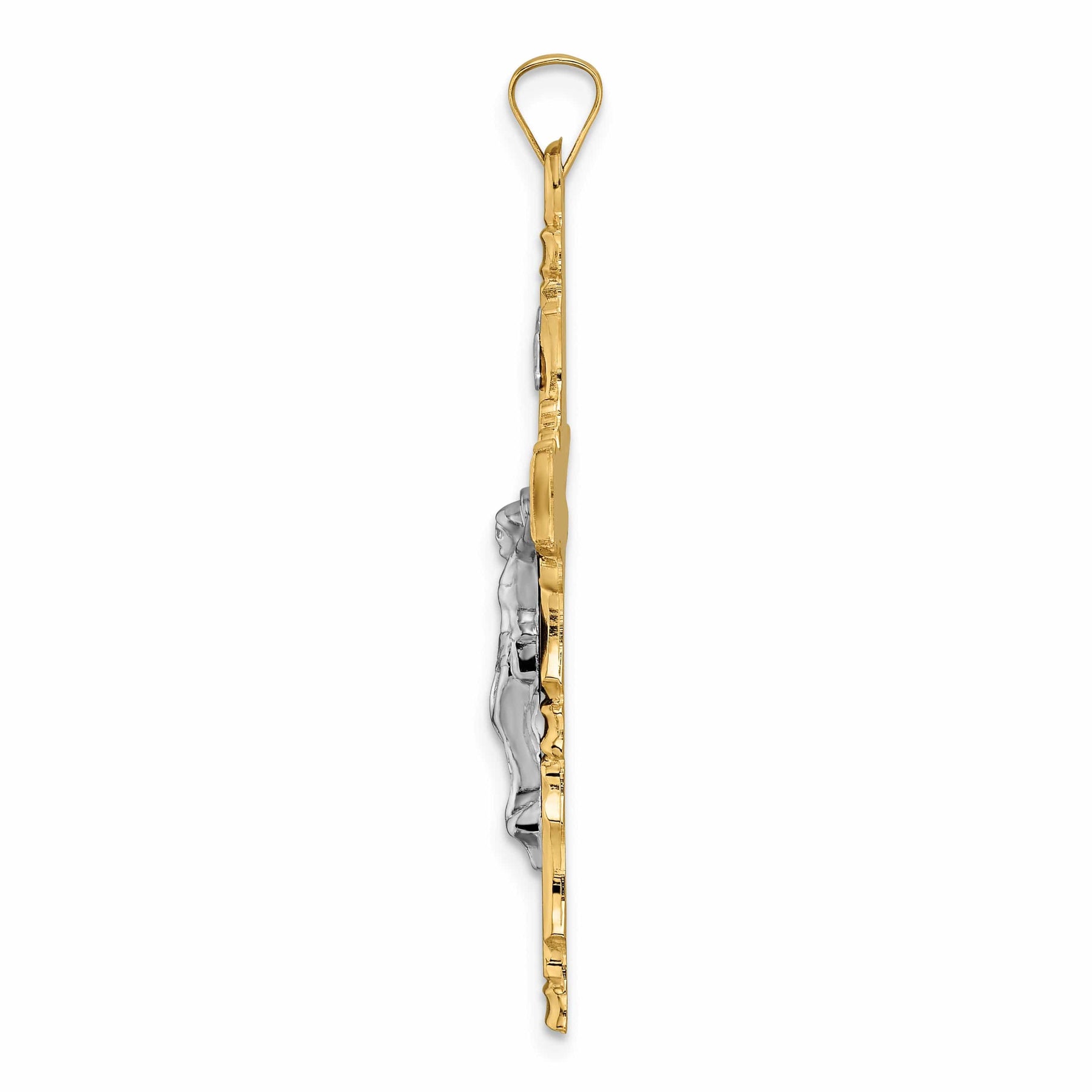14K दो-रंगीन सोने का क्लासिक ठोस फ्लेर डी लिस क्रॉस पेंडेंट एक भव्य और पारंपरिक डिज़ाइन में सौंदर्य और परंपरा को जोड़ता है। टिकाऊ 14K दो-रंगीन सोने से निर्मित, यह चमकदार पेंडेंट जटिल नक्काशी के साथ एक बनावटयुक्त फ्लेर डी लिस आकृति को प्रदर्शित करता है। इसका वजन 3.23 ग्राम और चौड़ाई 23.85 मिमी है, इसकी ठोस बनावट दीर्घकालिक सुंदरता सुनिश्चित करती है। व्यक्तिगत उपयोग के लिए या हार्दिक उपहार के रूप में यह पेंडेंट विश्वास और शैली दोनों का प्रतीक है।