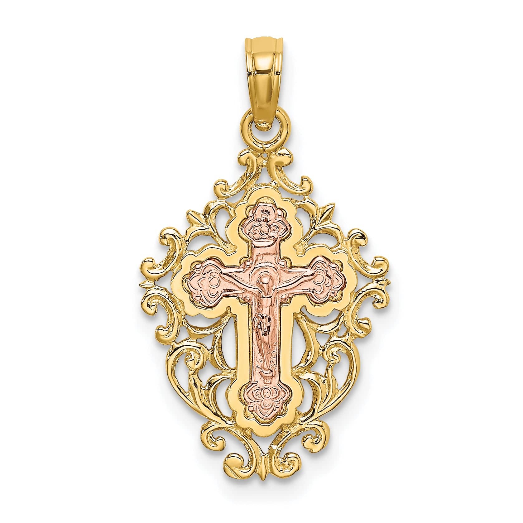 Lovely Rita's Charms & Pendants 14K Two-Tone Gold Contemporary Lace Trim Fleur de Lis Cross Pendant