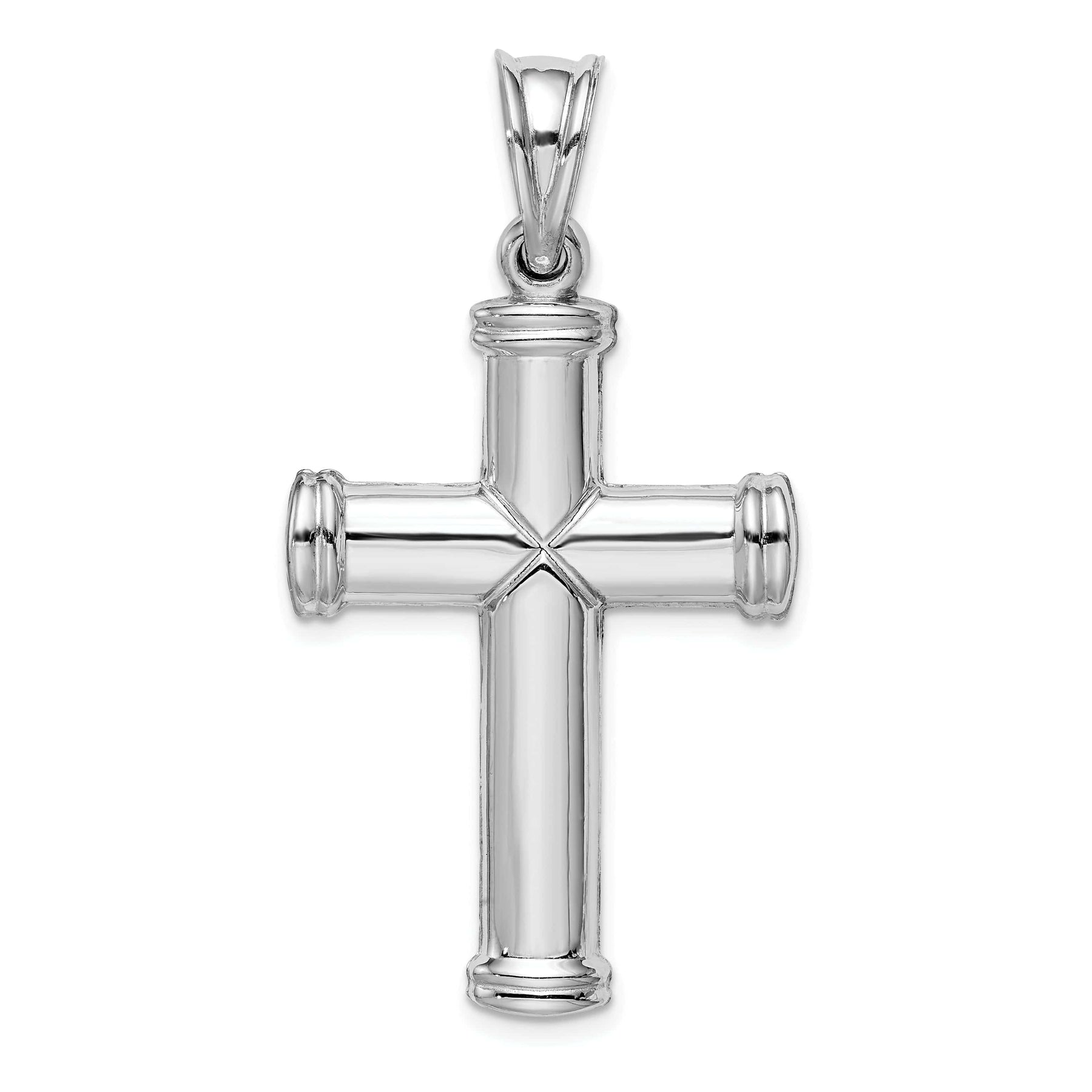 Realizzato in argento sterling cavo di alta qualità e placcato in rodio per una maggiore lucentezza e resistenza, questo ciondolo presenta una finitura unica lucidata a taglio diamante che cattura magnificamente la luce. Il design tridimensionale aggiunge un tocco moderno alla classica forma della croce latina, rendendolo davvero distintivo.