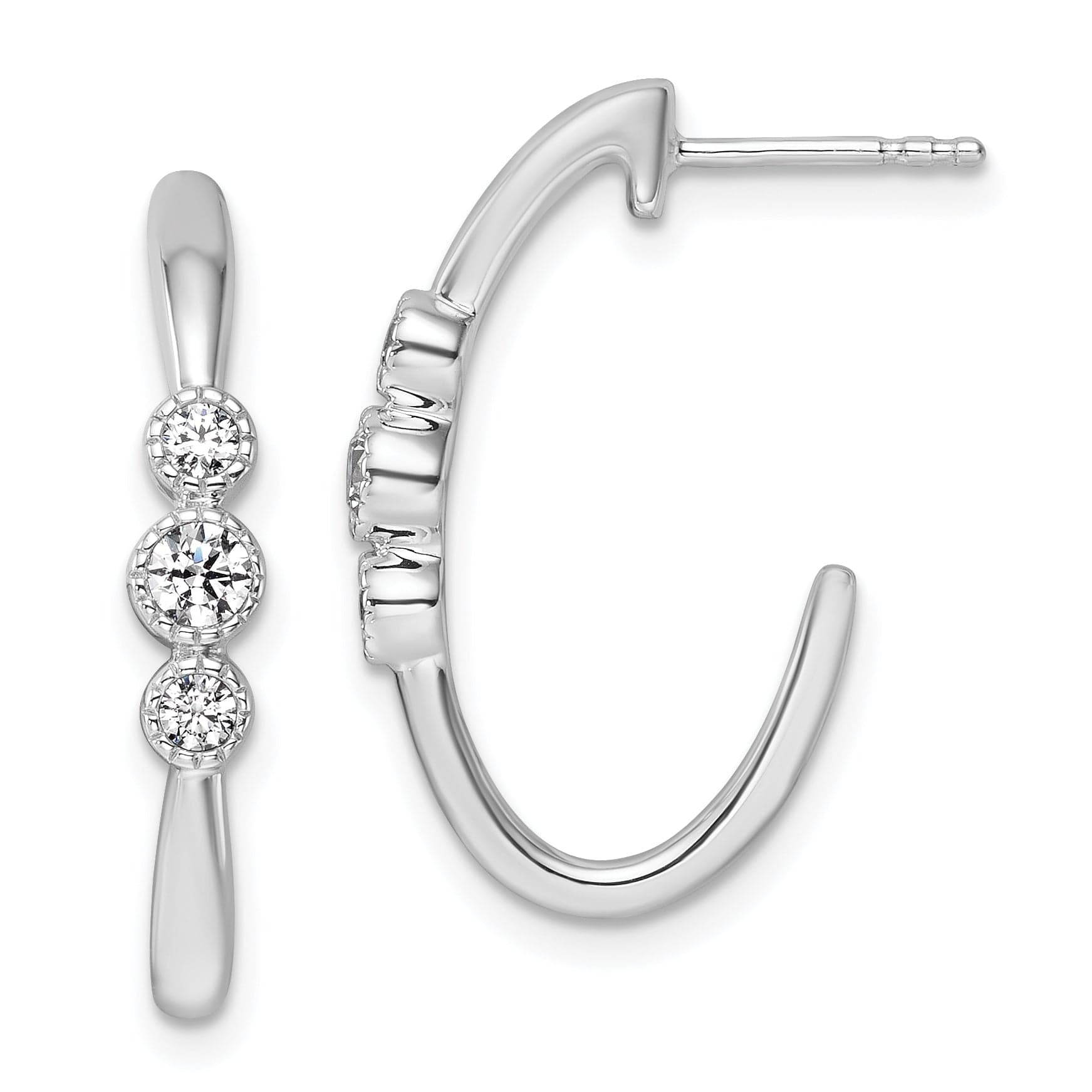 Eleva la tua eleganza con i nostri orecchini a cerchio a J in oro bianco 14K lucidato, impreziositi da splendidi diamanti da 3/8 di carato. Realizzati in solido oro bianco 14K e arricchiti da una placcatura in rodio, questi orecchini vantano una finitura liscia e lucida che garantisce durata e stile. Con sei diamanti squisiti, ogni orecchino misura 24,2 mm di lunghezza e 4 mm di larghezza, rendendoli l’accessorio perfetto a pendente per ogni occasione.