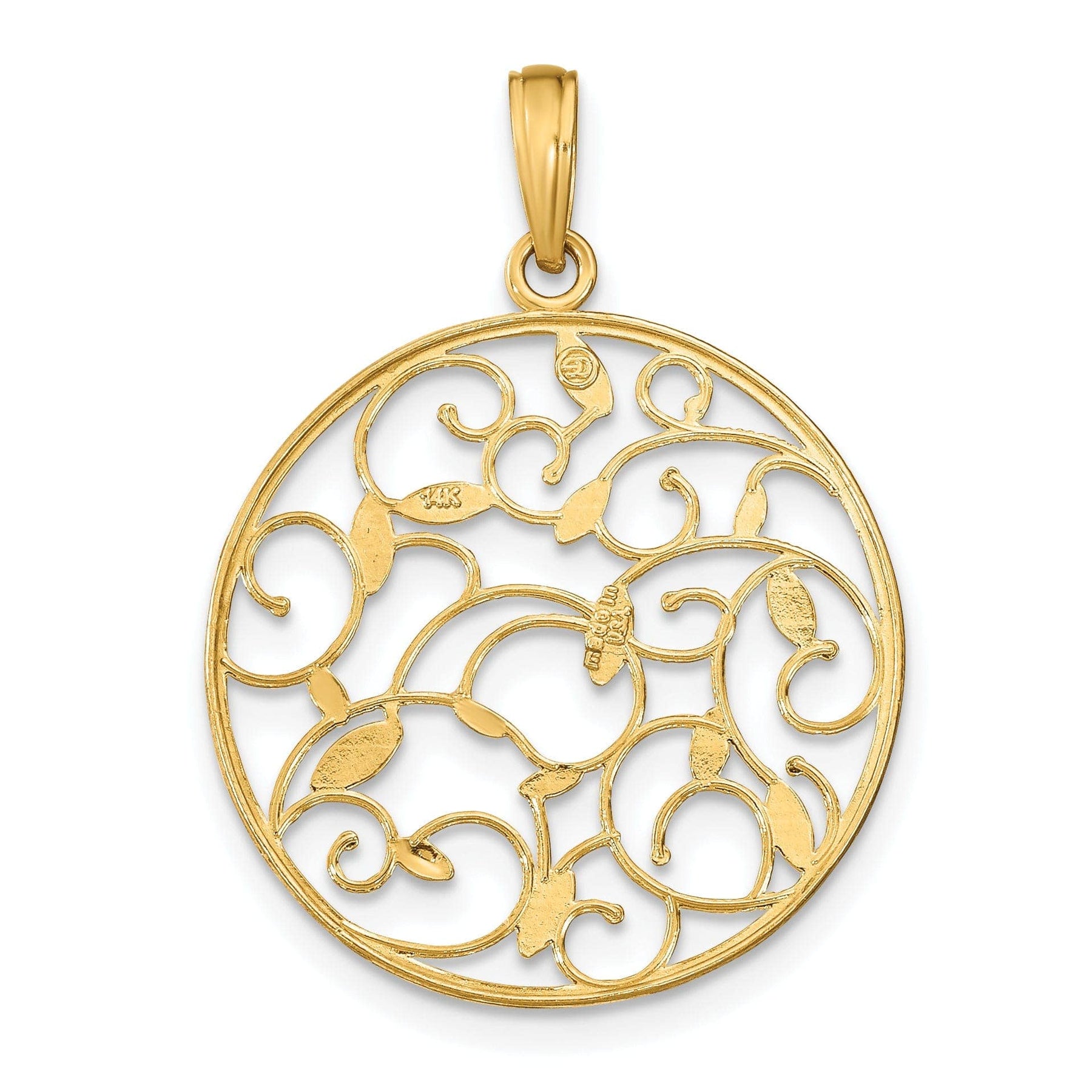 Investi in una bellezza senza tempo con questo ciondolo a medaglione floreale in filigrana con finitura lucida in oro giallo 14K e rodio bianco e aggiungi un tocco di lusso al tuo guardaroba.