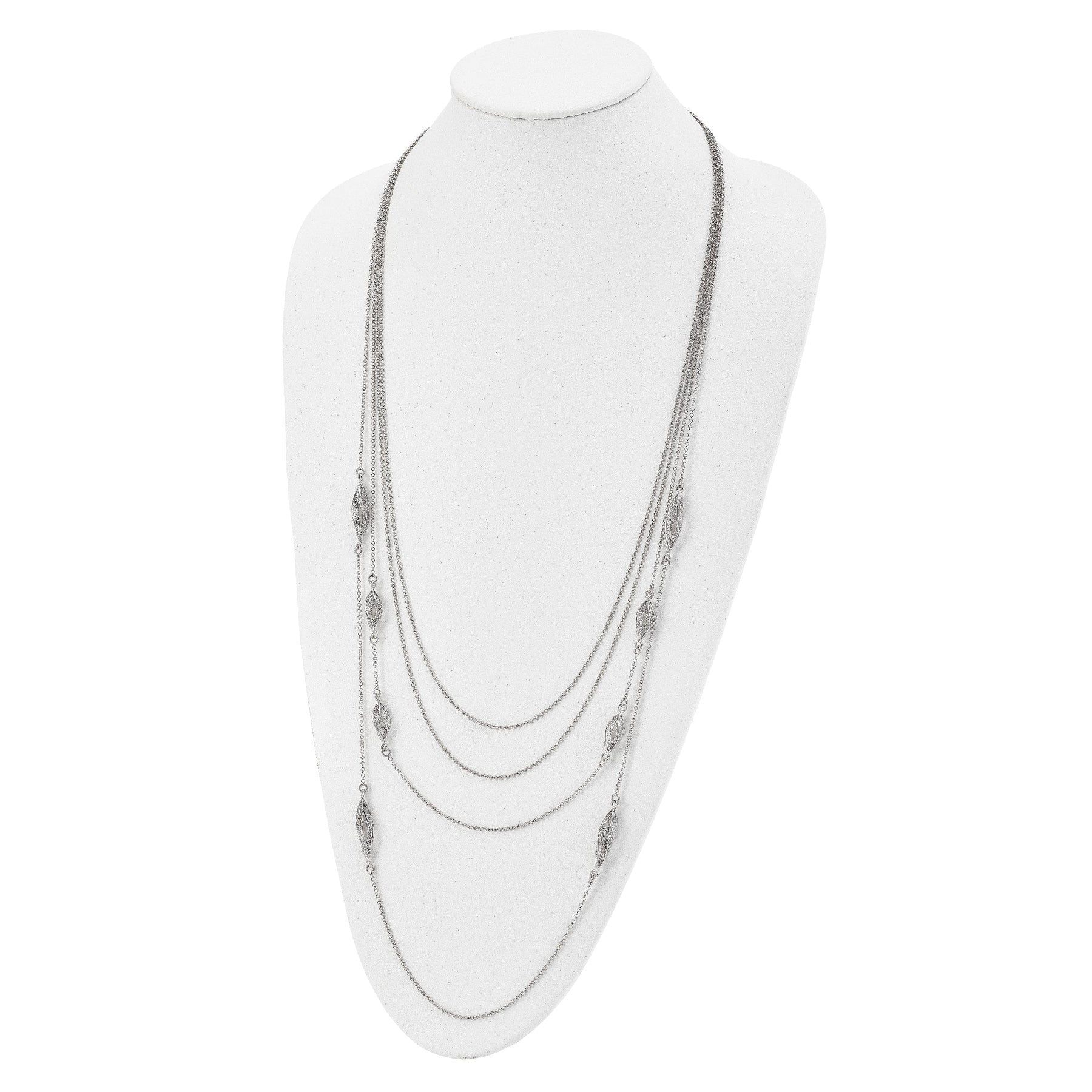 Sia che tu voglia impreziosire un evento speciale o semplicemente elevare il tuo aspetto quotidiano, questa Collana Fantasia a più fili in Argento Filigranato saprà attirare gli sguardi e lasciare un'impressione duratura. Aggiungila oggi stesso alla tua collezione di gioielli e vivi il lusso e l’eleganza dell’arte orafa di Leslie.