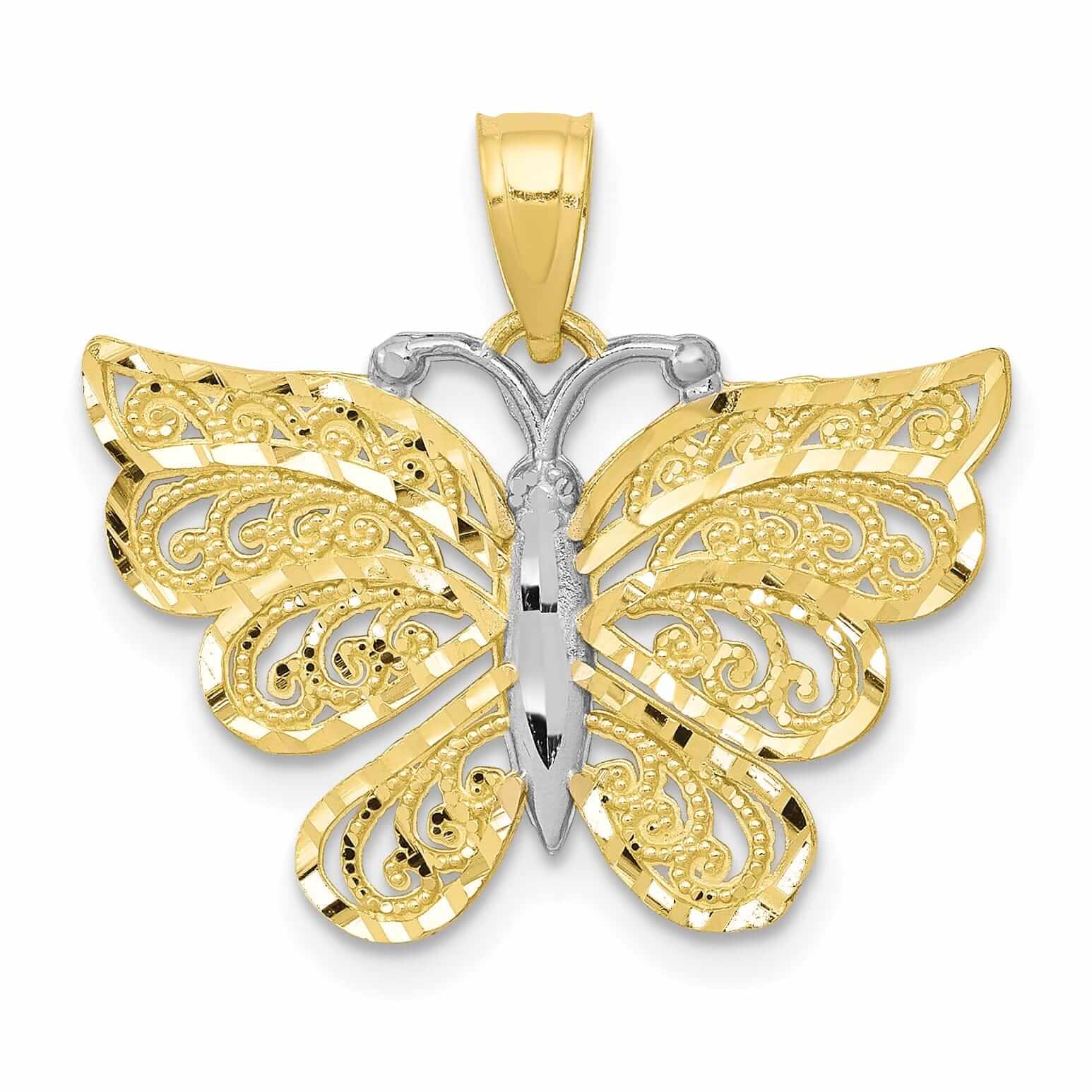繊細な輝きを放つ10K二色ゴールド磨き仕上げの蝶のペンダントをご紹介します。こちらの美しく仕上げられたペンダントは、堅牢な10K二色ゴールド製で、磨き上げられたダイヤモンドカットの仕上げが鮮やかな光沢を放ちます。繊細で軽やかなデザインは長さ20mm、幅23mmのサイズで、あらゆる場面にふさわしいアクセサリーです。特別な行事の装いを引き立てるのはもちろん、日常の装いに優雅さを添えるこの時を超えた蝶のペンダントは、注目を集め、印象を残すことでしょう。ご自身へのご褒美や大切な方への贈り物として、長く愛される贅沢な一品です。10K二色ゴールド磨き仕上げの蝶のペンダントで、洗練された魅力をお楽しみください。