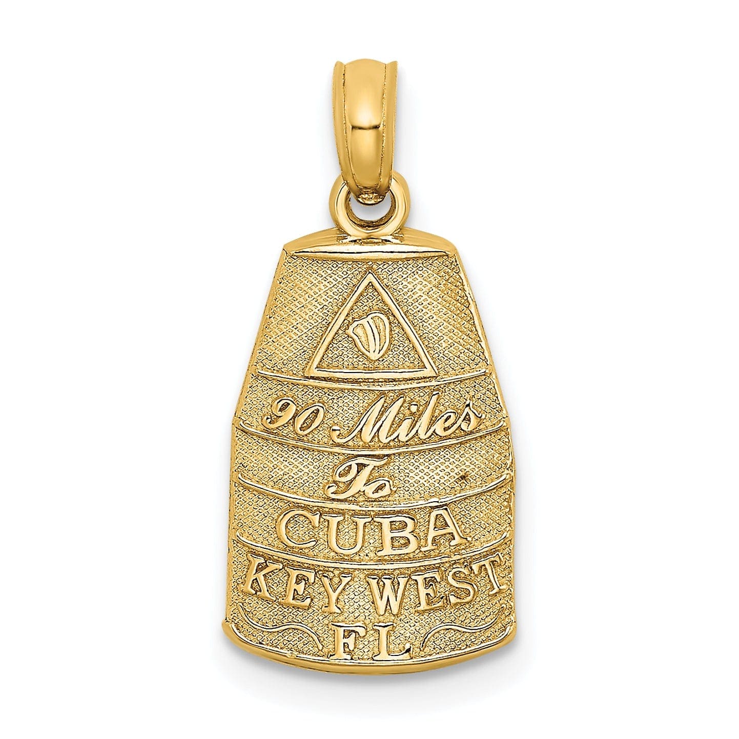 この14Kイエローゴールド磨き上げテクスチャ仕上げ「アメリカ合衆国最南端、キューバから90マイル、フロリダ州キーウェスト」チャームペンダントは、長く大切にされる時代を超えた逸品です。ぜひコレクションに加え、キーウェストの美しさと歴史を優雅に祝福してください。