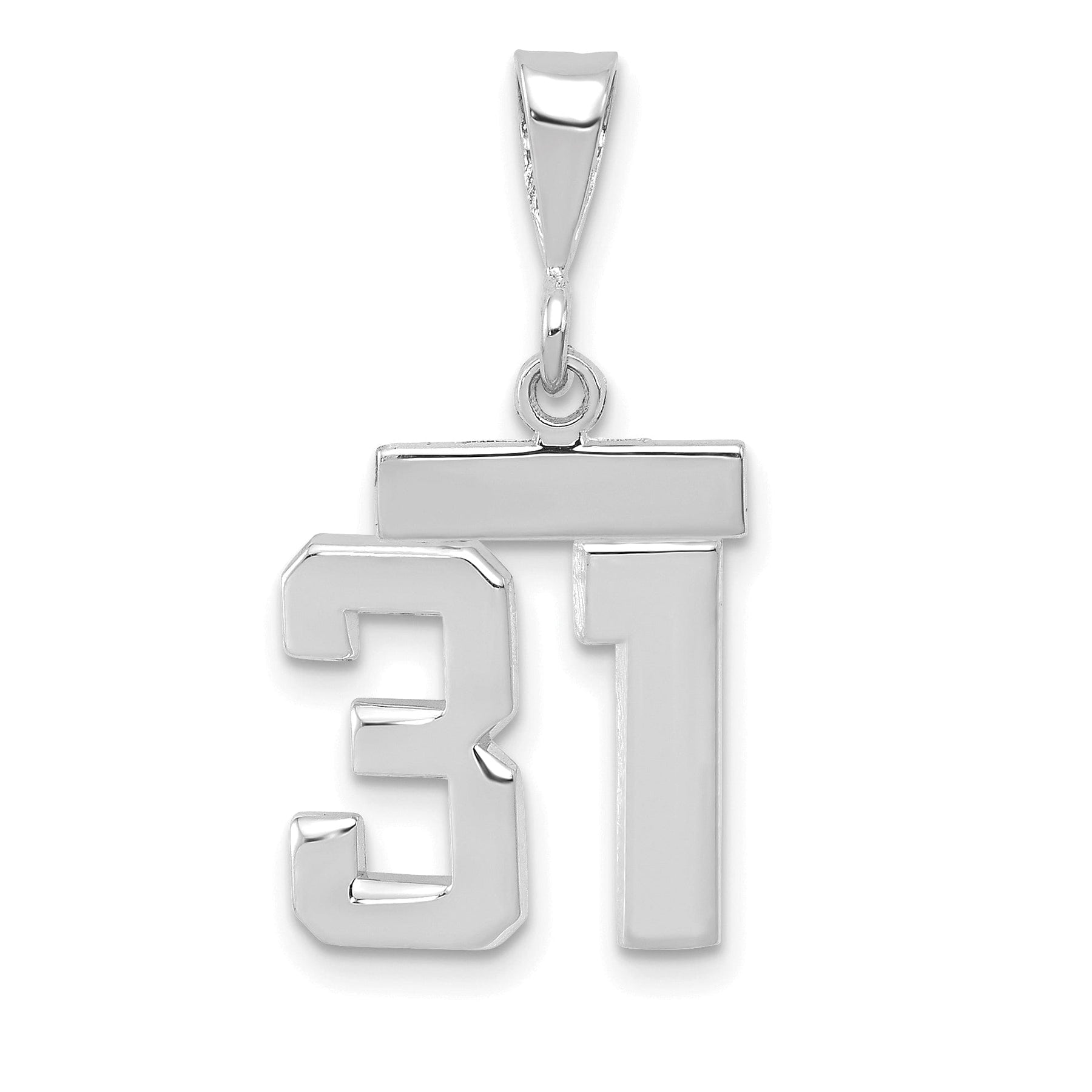 どんな装いにも洗練された趣を添える美しい14Kホワイトゴールド磨き仕上げの小サイズ「31」ナンバーチャームペンダント。今すぐご注文いただき、アクセサリーの格を高めてください。