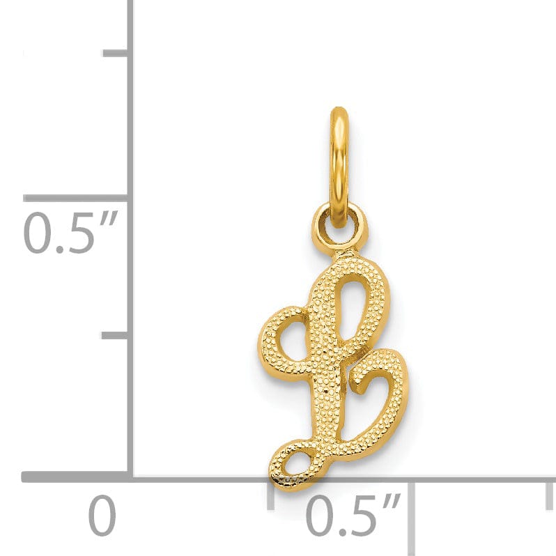14K イエローゴールド 磨き仕上げ 小さな筆記体デザインの文字 L イニシャル チャーム ペンダント