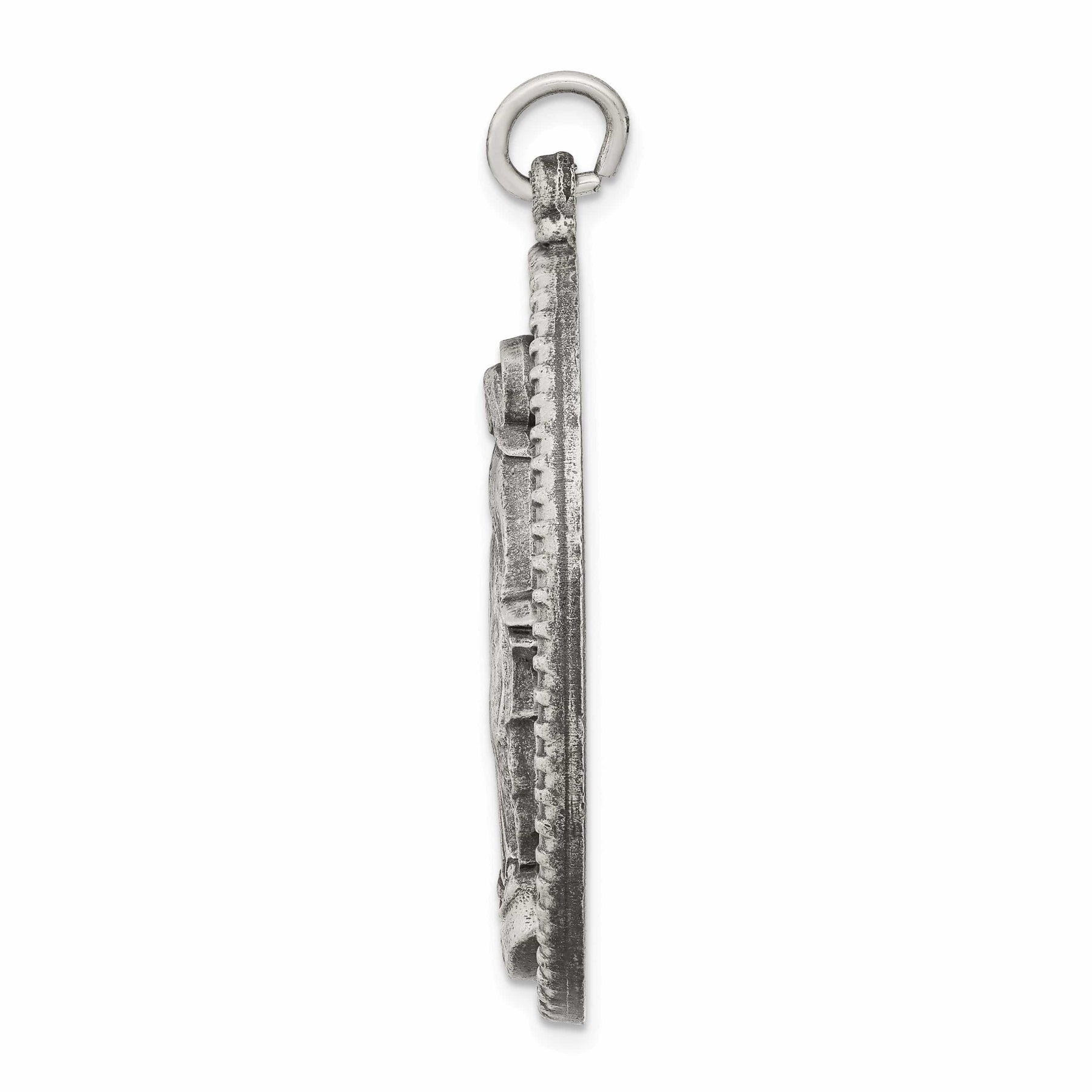 アンティーク仕上げはこの時代を超えた品にヴィンテージの趣を添え、独特で洗練された風合いを醸し出しています。スターリングシルバーの構造は、このペンダントが時の試練に耐え、世代を超えて受け継がれることを保証します。チェーンに通して存在感のある一品として、または他のネックレスと重ねて流行を取り入れた個性的な装いにもお使いいただけます。
