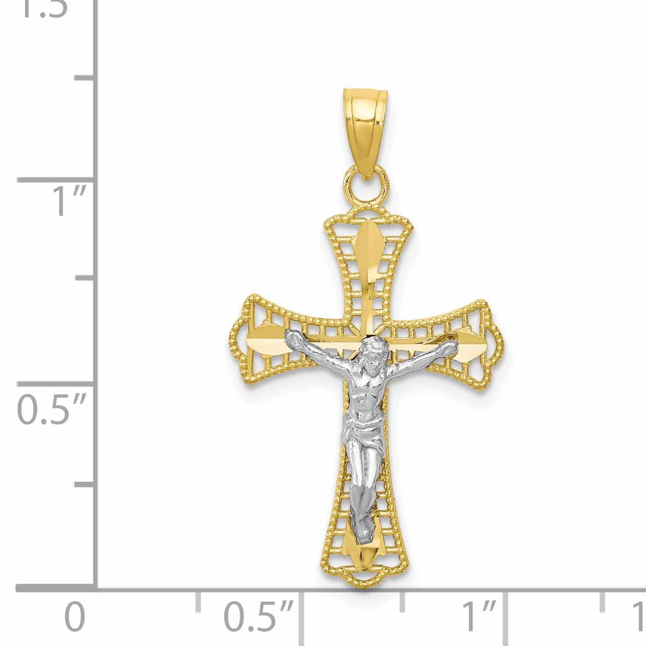 10k Yellow Rhodium Gold Polished Crucifix Pendant