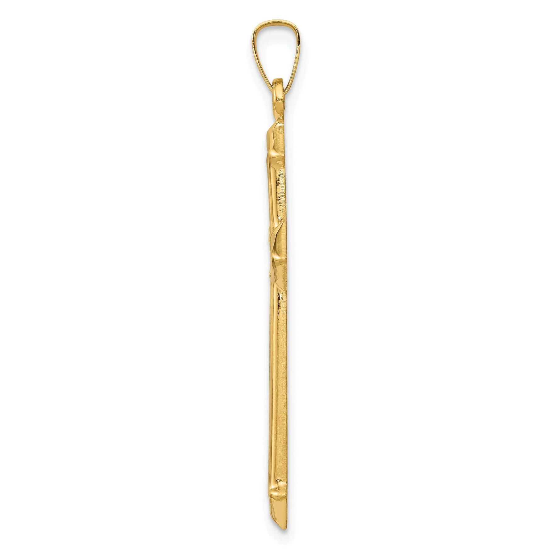 Elevate your style with our stunning 14K Two-Tone Gold Classic & Textured Passion Cross Pendant. This exquisite piece features a beautiful blend of polished 14K yellow gold and white rhodium plating, creating a striking contrast. Designed for durability and lasting beauty, it weighs 1.08 grams and measures 38.47 mm in length and 21.11 mm in width. The textured finish adds a unique touch, making it perfect for any occasion. Enhance your jewelry collection with this timeless symbol of faith.