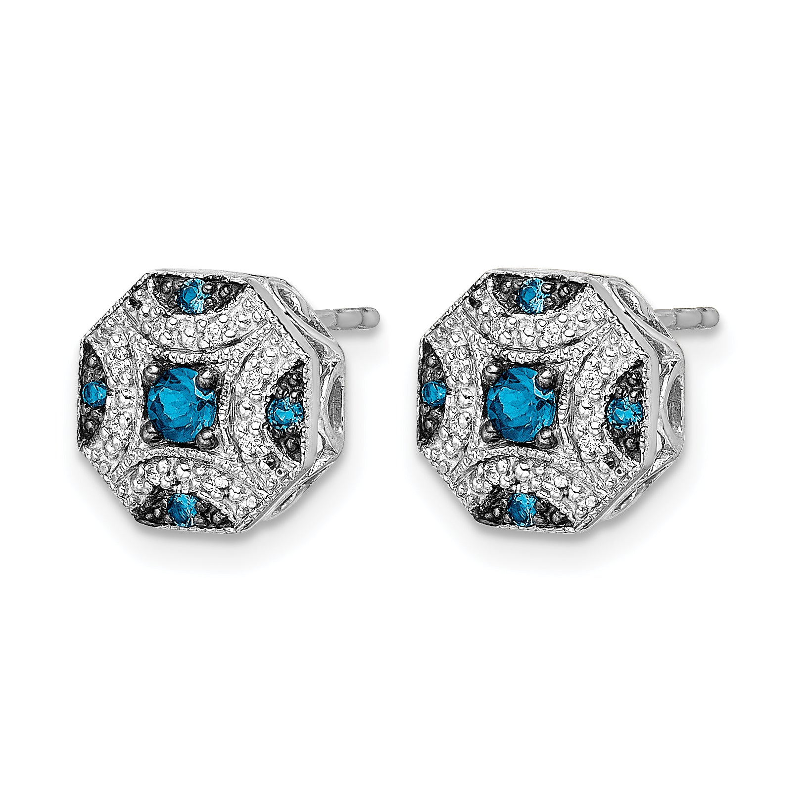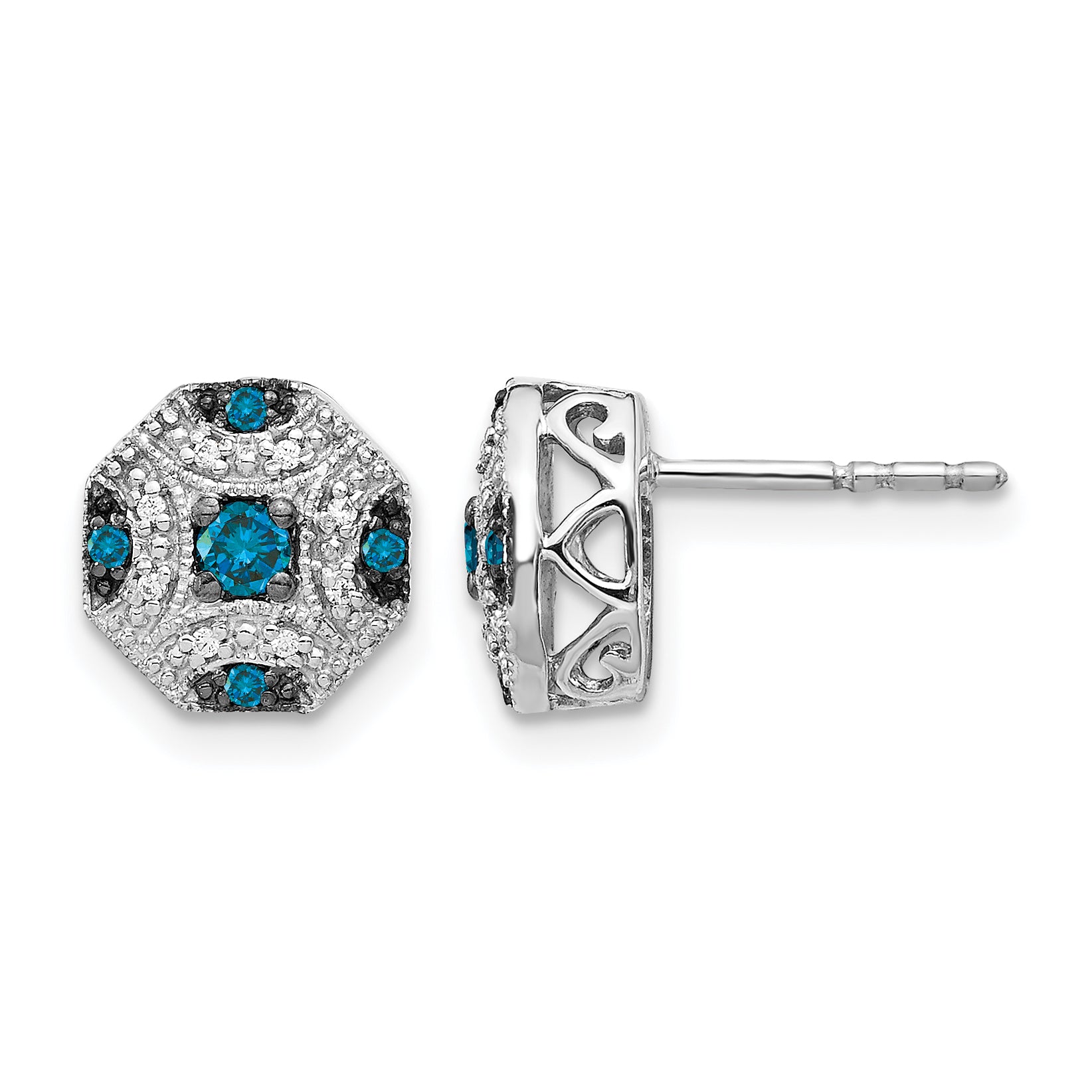 14k White Gold 1/4 CT White Blue Diamond Fancy Octagon Post Earrings