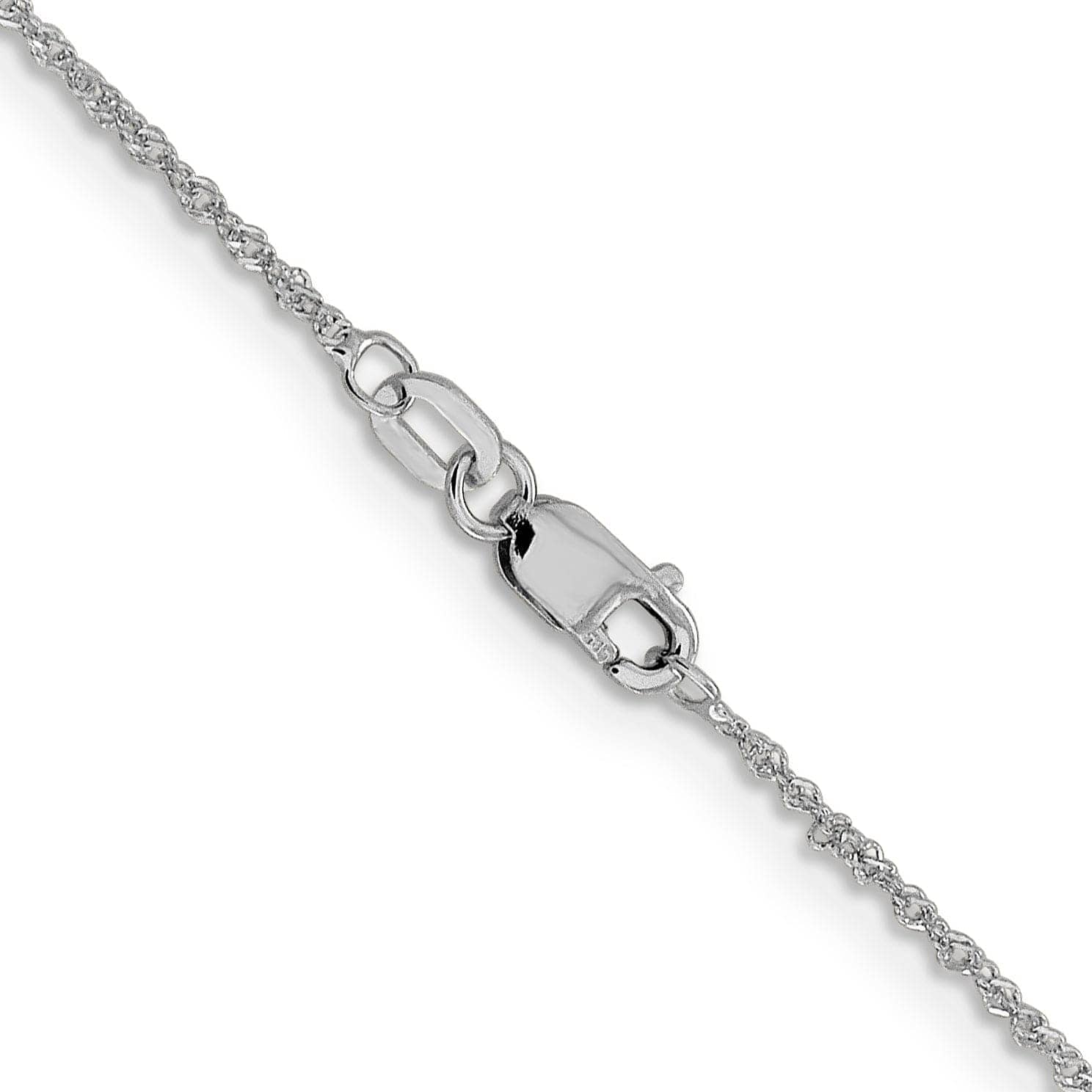 Introducing Leslie's exquisite 14K White Gold 1 mm Sparkle Singapore Chain, the perfect accessory to elevate any ensemble. Crafted from high-quality 14K white gold, this chain exudes luxury and sophistication.