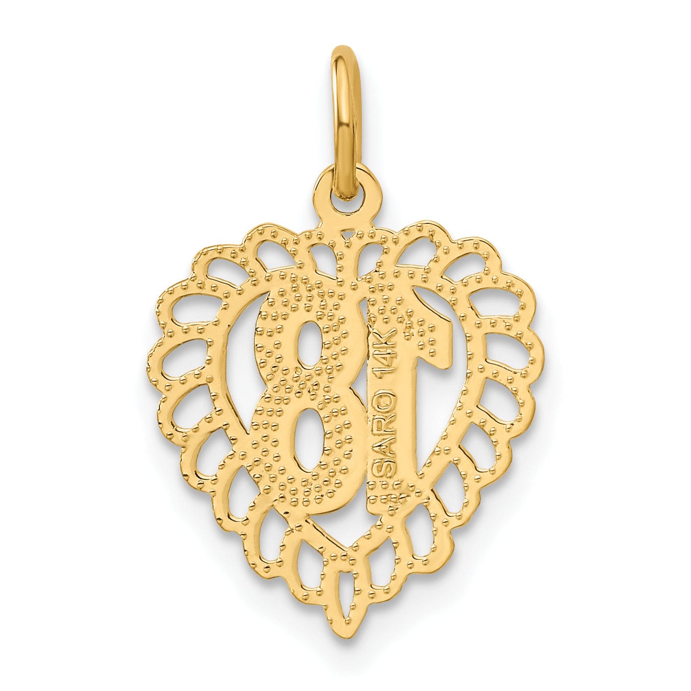 14k Yellow Gold 18th Heart Charm Pendant
