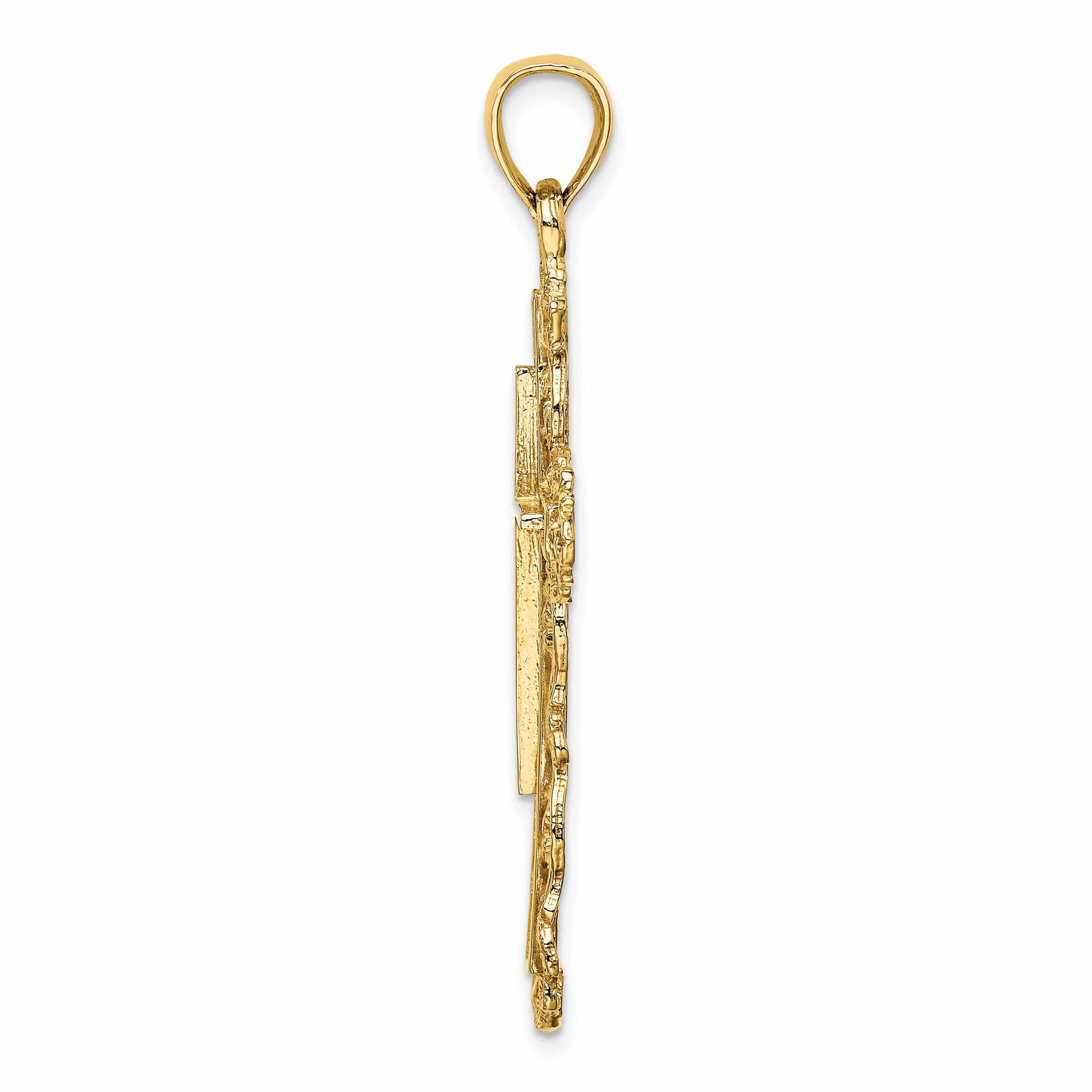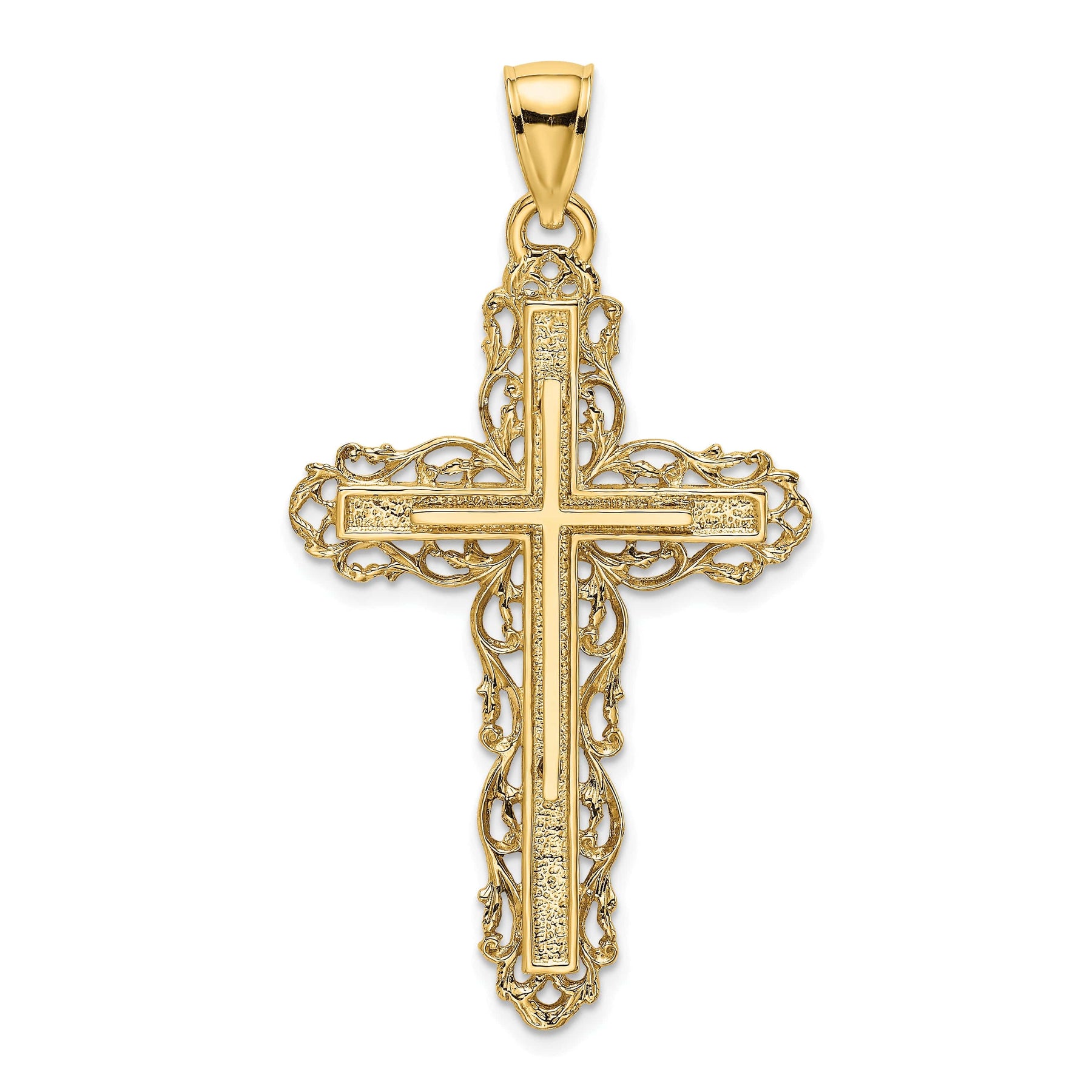 14K Yellow Gold Dainty with Lace Trim Filigree Cross Pendant