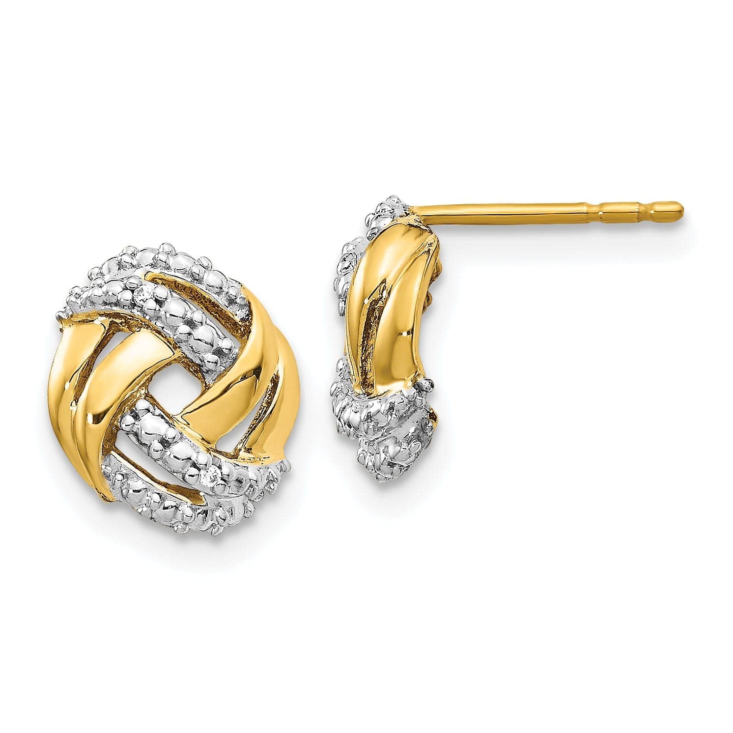 14k Yellow Gold Diamond Love Knot Post Earrings 0.12 ct