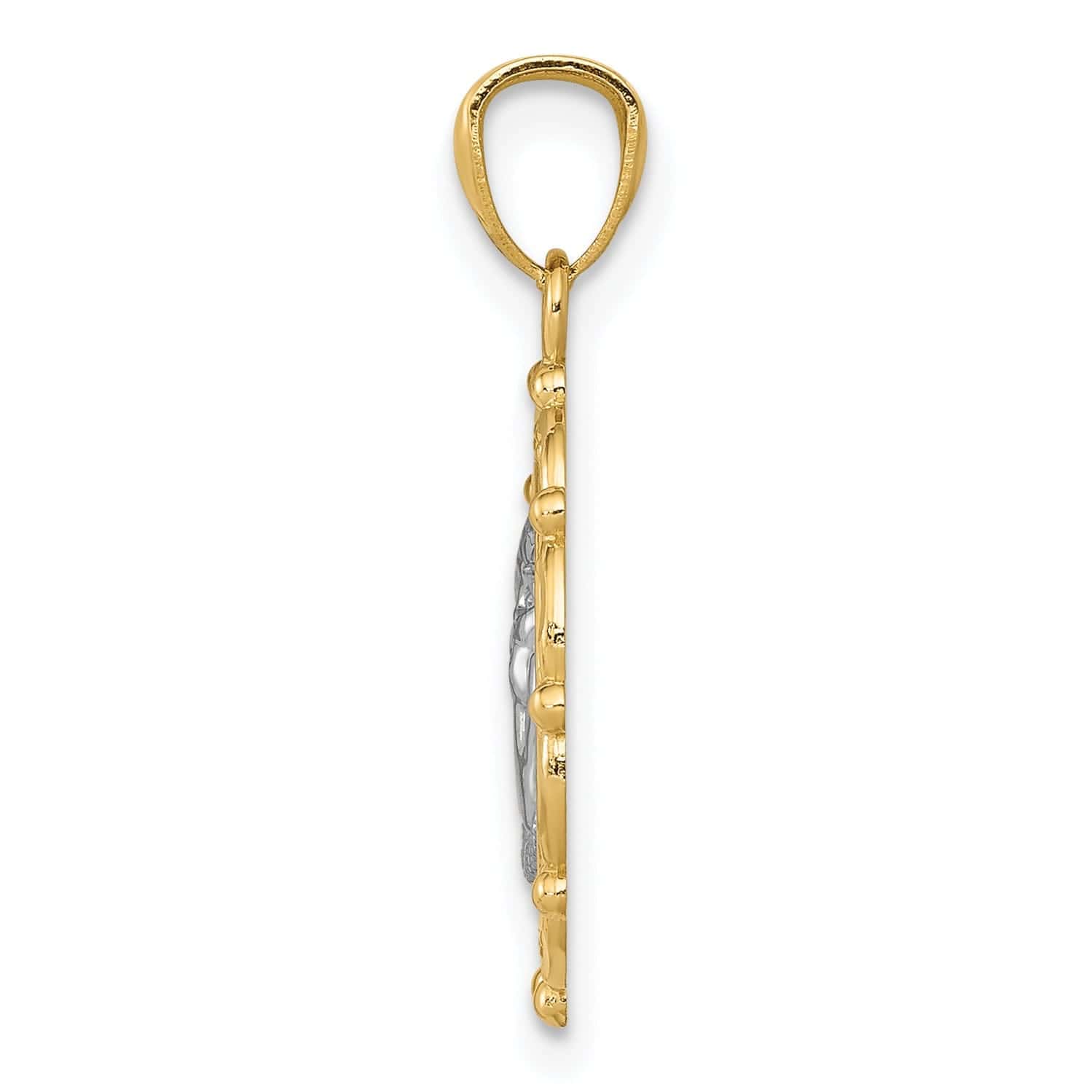 This pendant is the perfect gift for a loved one or a special treat for yourself. It comes beautifully packaged in a jewelry box, ready for gifting. Elevate your style with our 14K Yellow Gold Rhodium Finish Round Concave Medal Angel Pendant and let your inner angel shine.