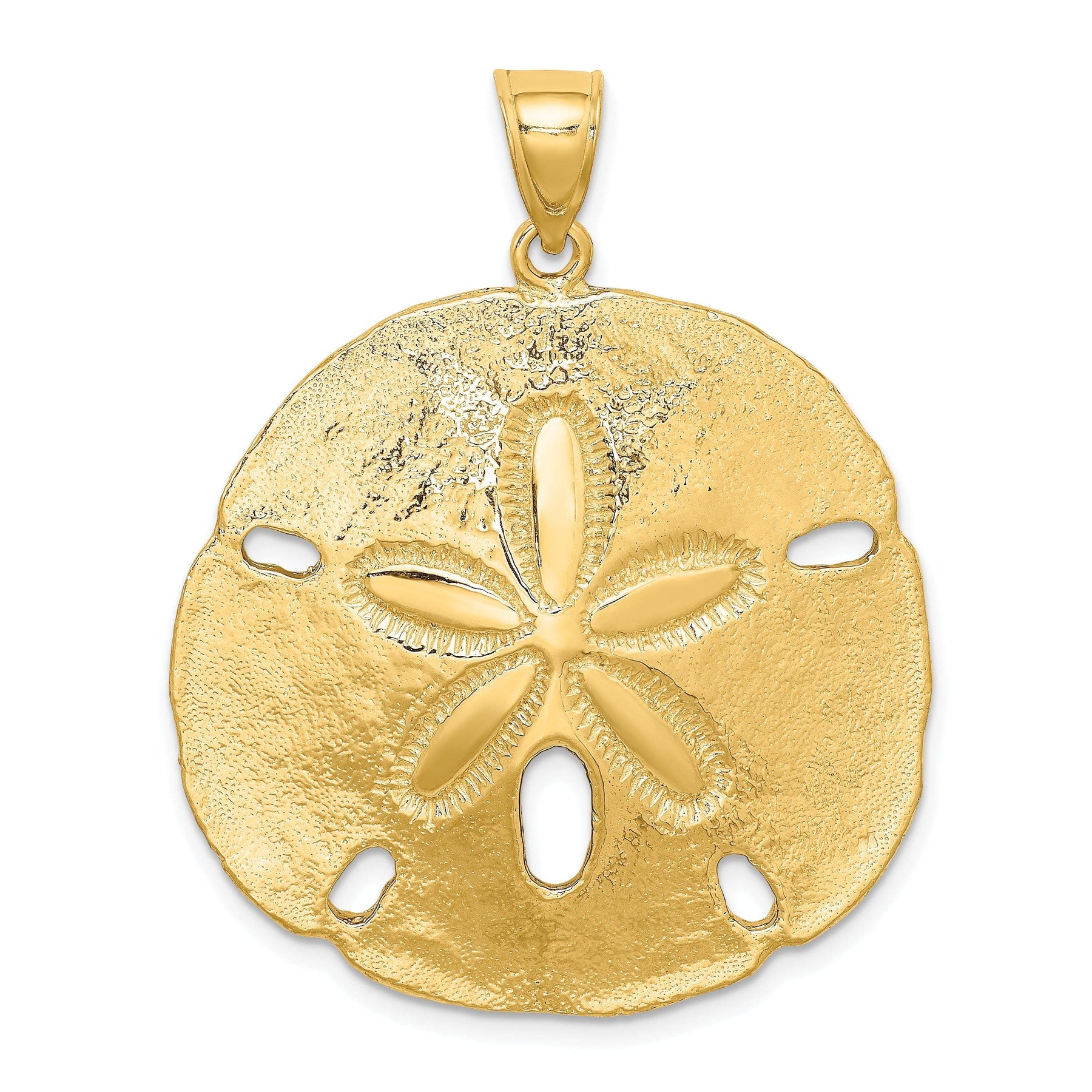 Whether you're dressing up for a special occasion or adding a touch of glam to your everyday look, this beautiful pendant is sure to make a statement. Treat yourself or a loved one to this timeless piece that will be cherished for years to come. Shine bright with our 14k Yellow Gold Textured Polished Finish Large Sand Dollar Charm Pendant.
