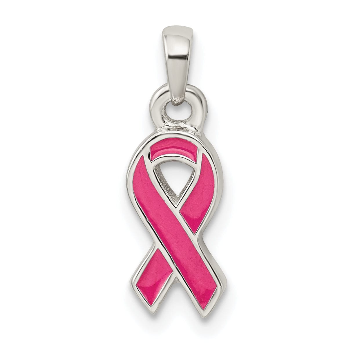 Add a touch of elegance and style to your jewelry collection with this stunning Silver Polished Pink Enameled Ribbon Charm Pendant. Crafted from high-quality sterling silver, this charm boasts a sleek and polished finish that is sure to catch the eye. The delicate pink enamel ribbon adds a pop of color and femininity to the design.