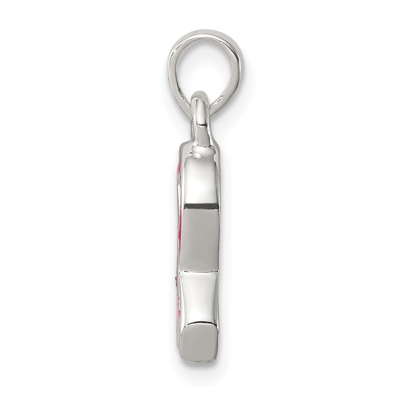Silver Polished Pink Enameled Ribbon Charm