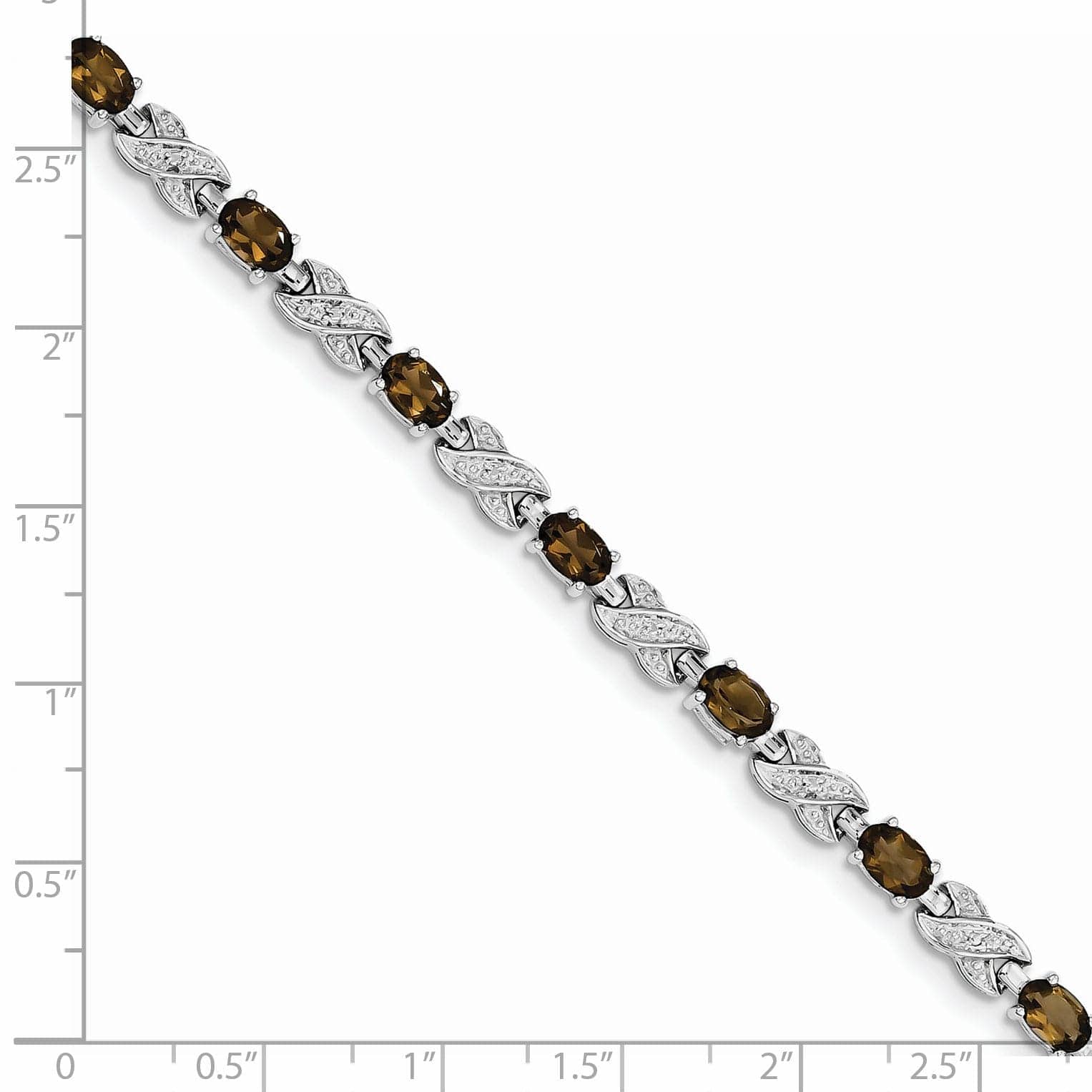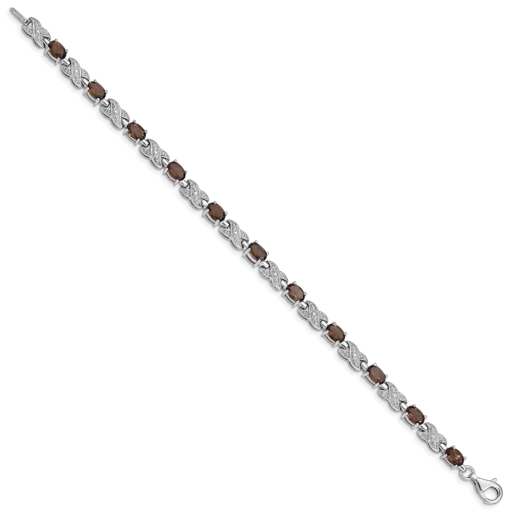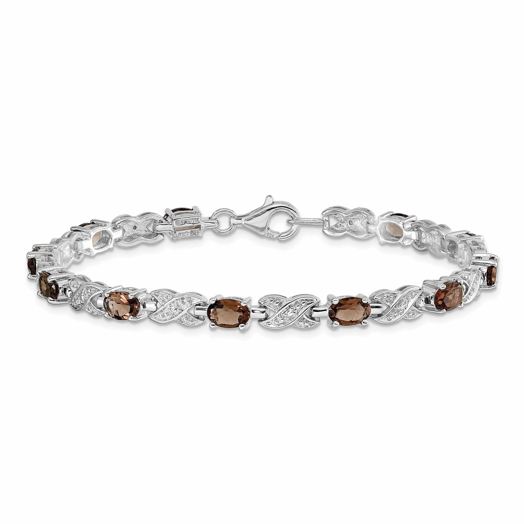 Elevate your jewelry collection with this exquisite Sterling Silver Polished Rhodium Plated Smoky Quartz Gemstone Bracelet. Crafted with the finest materials, this luxurious bracelet features 6x4-mm oval-cut smoky quartz gemstones totaling 4.5 carats. The polished rhodium plated sterling silver adds a touch of elegance, while the textured finish gives it a unique and eye-catching appeal.