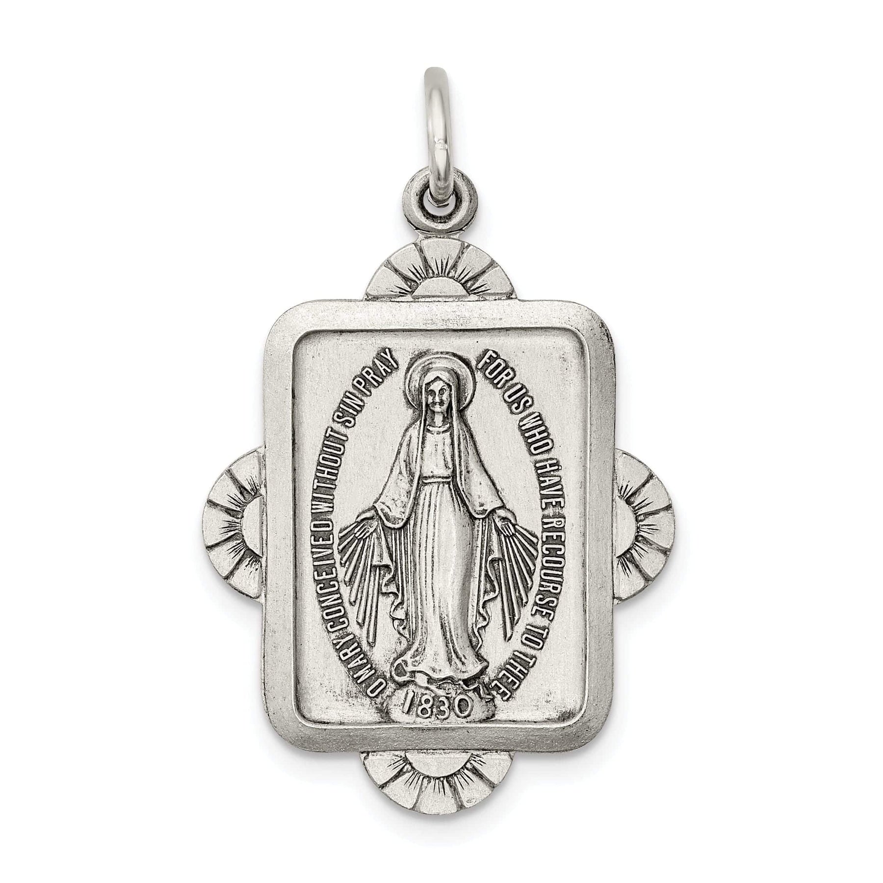 This Sterling Silver Antiqued Miraculous Medal is a wonderful symbol of faith and devotion. It makes a meaningful gift for loved ones or a beautiful addition to your own jewelry collection. Embrace the grace and protection of the Blessed Virgin Mary with this exquisite medal. Order yours today and let your faith shine bright.