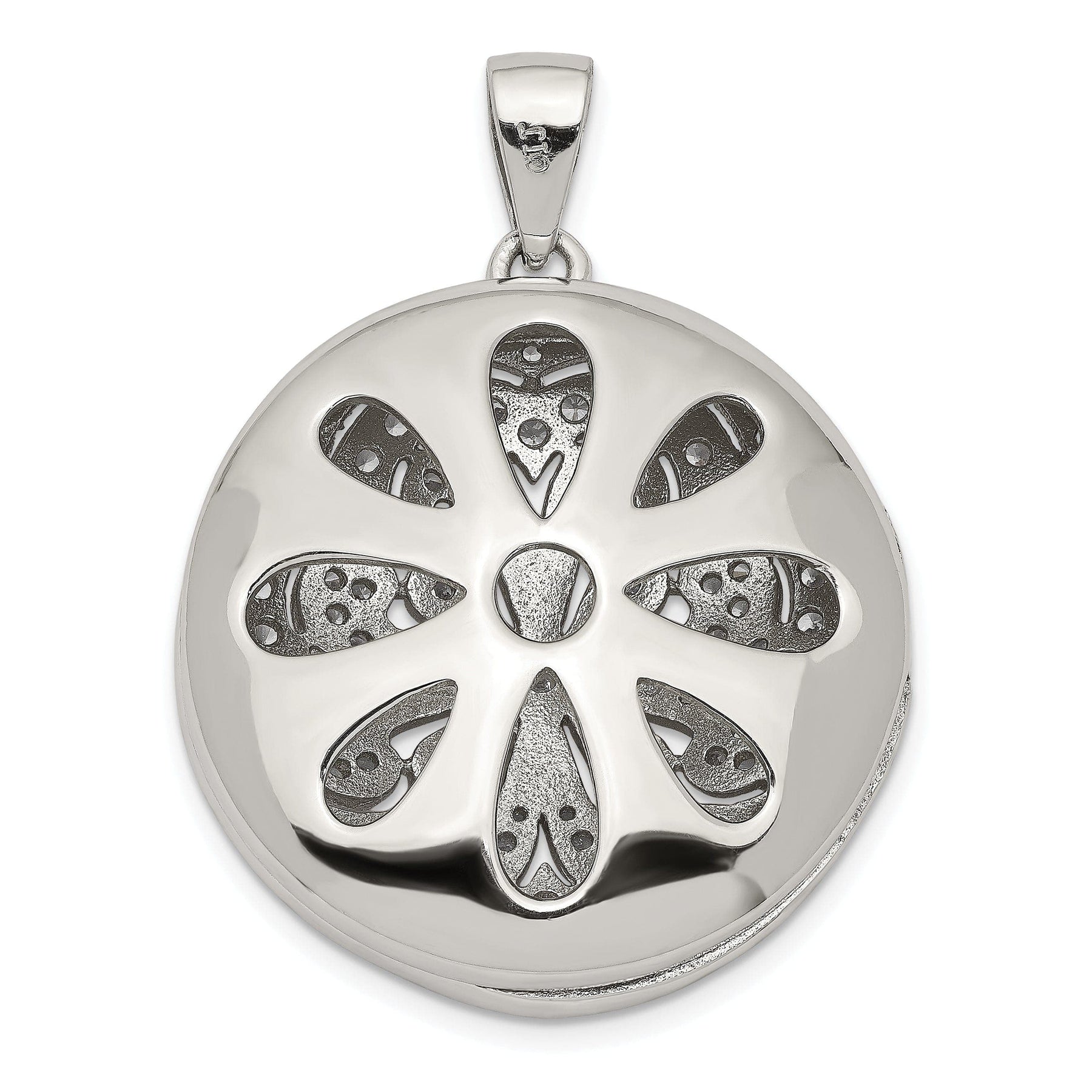 This pendant can be worn alone for a simple and chic look, or layered with other necklaces for a more dramatic effect. Whether you're dressing up for a special occasion or adding a touch of glamour to your everyday look, this Sterling Silver CZ Circle with Flower Design Locket Pendant is sure to make a statement. Add it to your jewelry collection today and elevate your style to new heights.