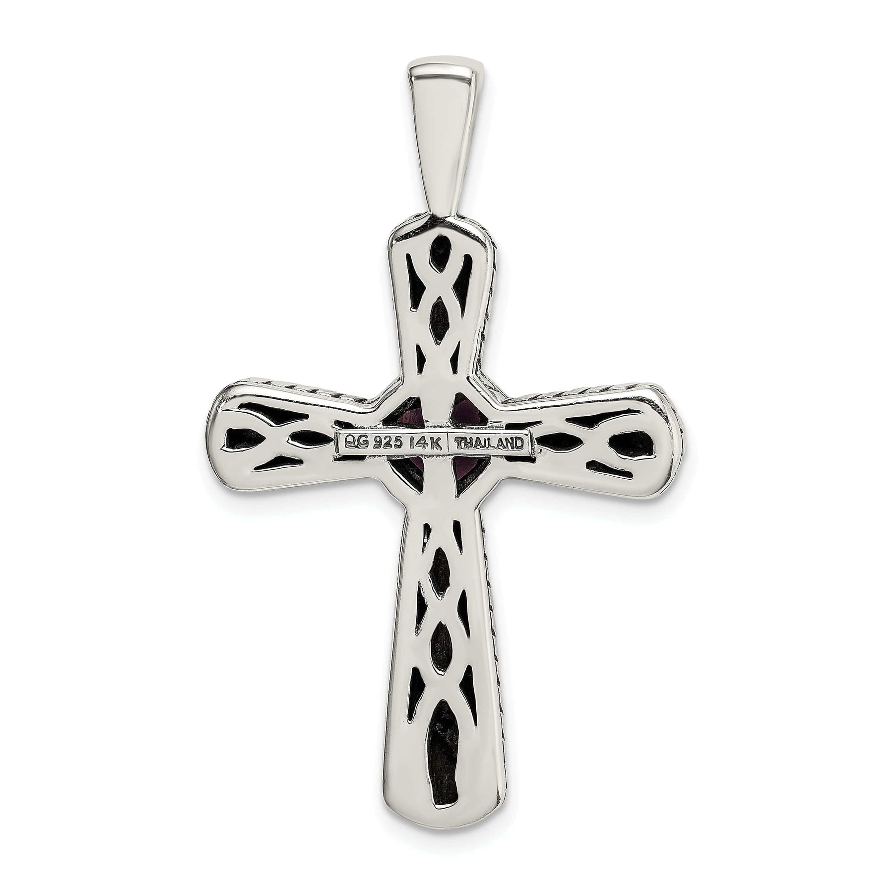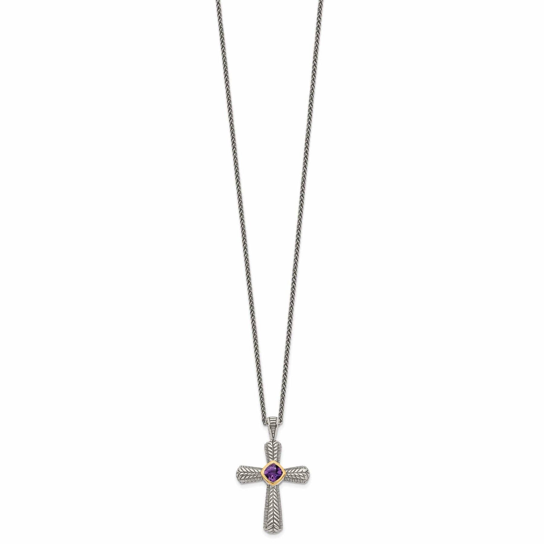 The necklace is complete with an 18-inch chain, allowing it to rest beautifully at the base of the neck and showcase the exquisite craftsmanship of the piece. Whether worn on its own for a touch of elegance or layered with other necklaces for a more intricate look, this Sterling Silver Gold Amethyst Cross Necklace is versatile and timeless.