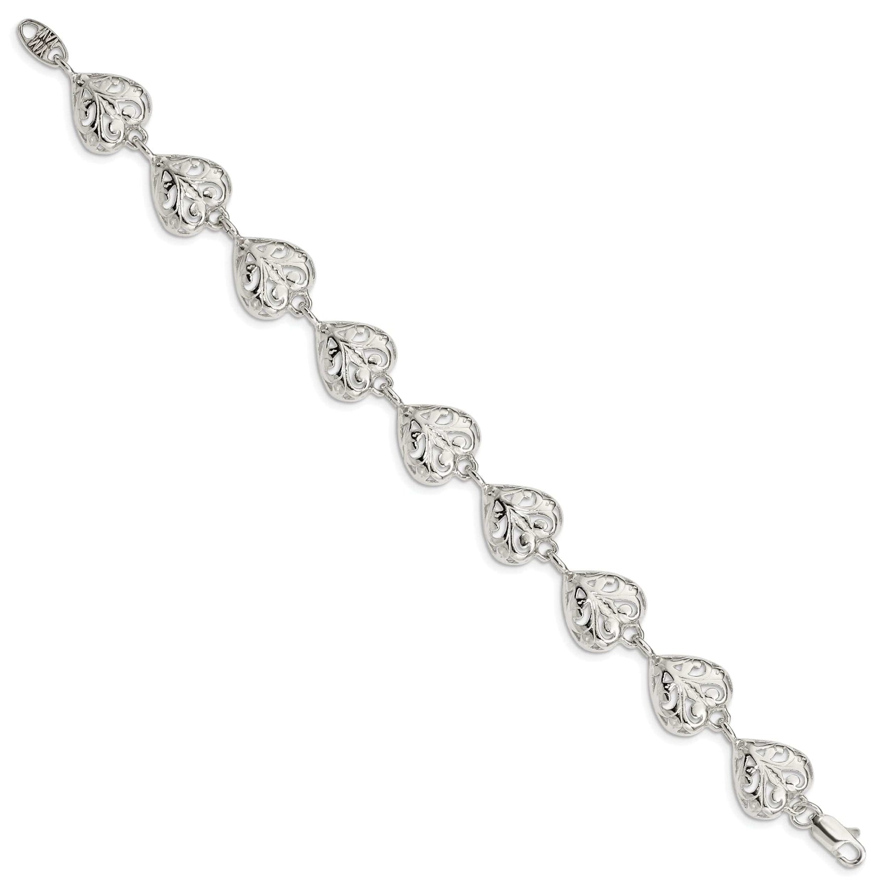 Whether you're treating yourself or looking for the perfect gift for a loved one, this Sterling Silver Heart Bracelet is sure to make a lasting impression. Shop now and add a touch of love and sophistication to your look with this exquisite piece of jewelry.