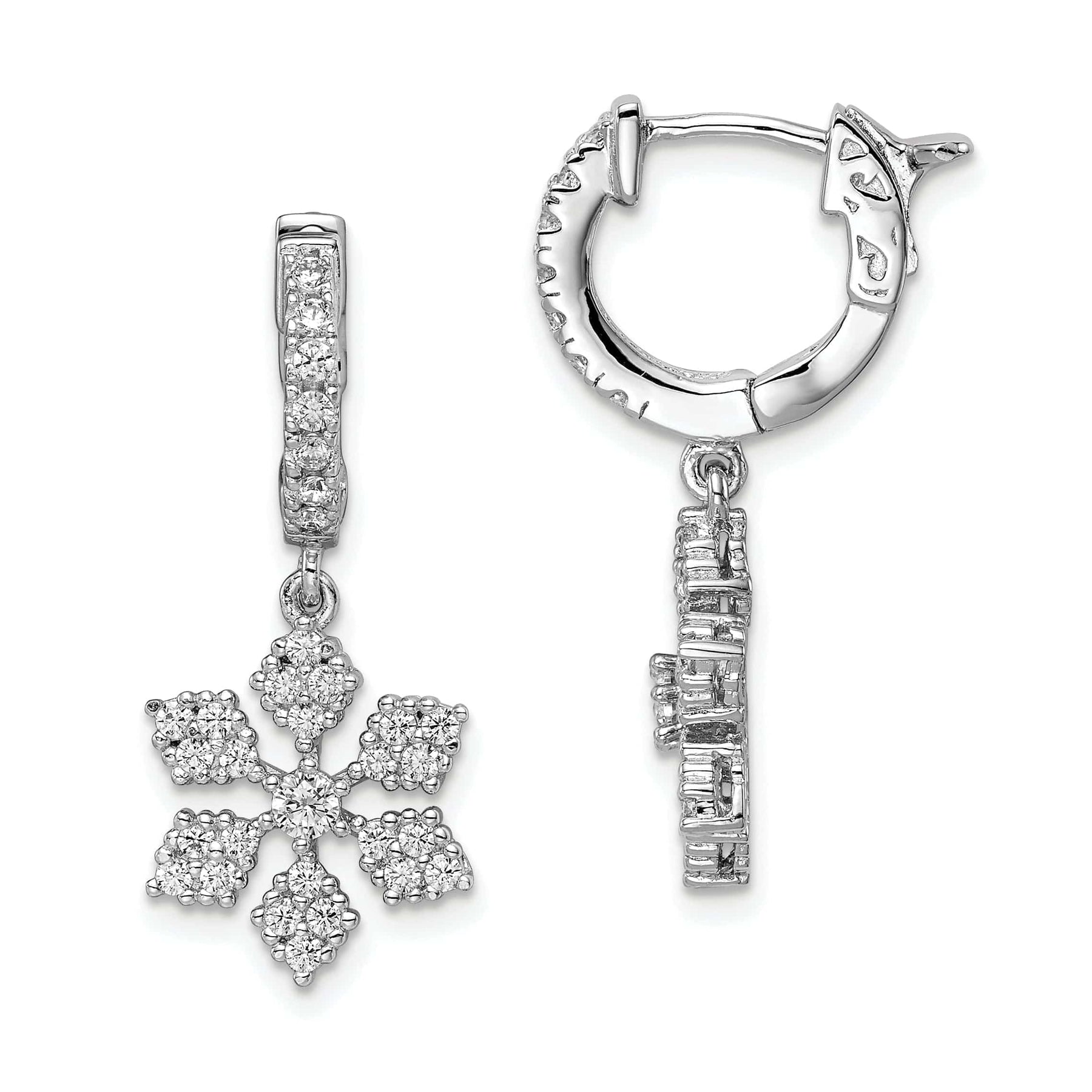 Add a touch of winter wonder to your accessory collection with these stunning Sterling Silver Hoop Snowflake Earrings. Crafted from high-quality sterling silver and rhodium plated for a brilliant shine, these earrings feature intricately detailed snowflake dangles that are sure to catch the light with every move you make.