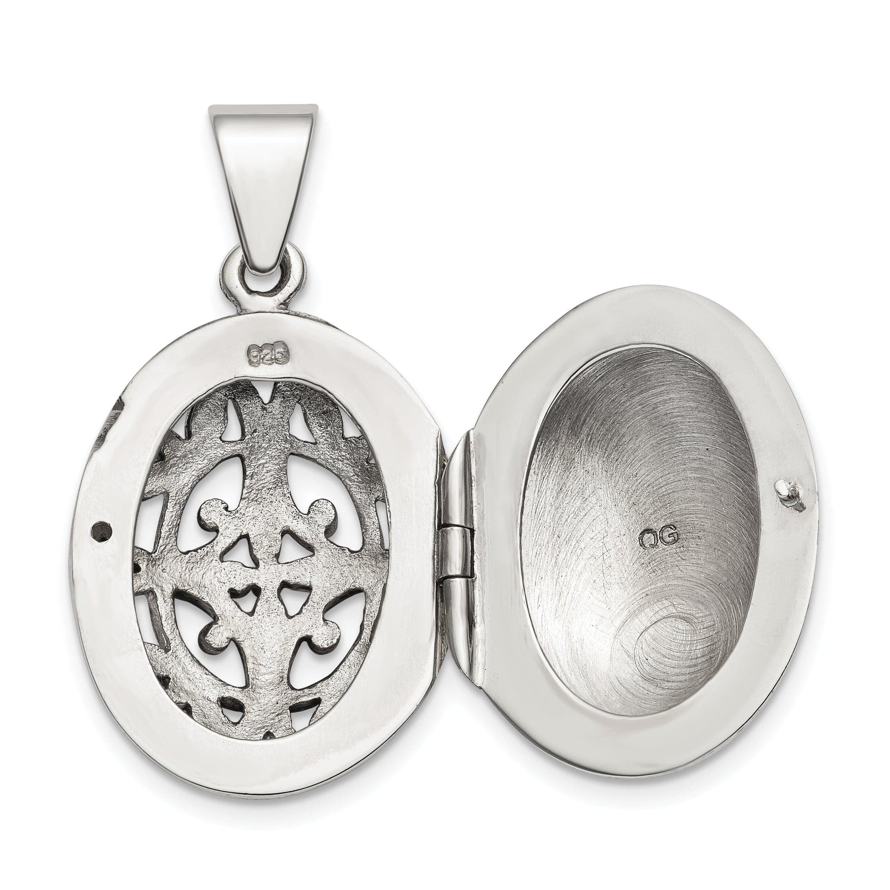 Sterling Silver Polished Filigree 17mm Oval Locket