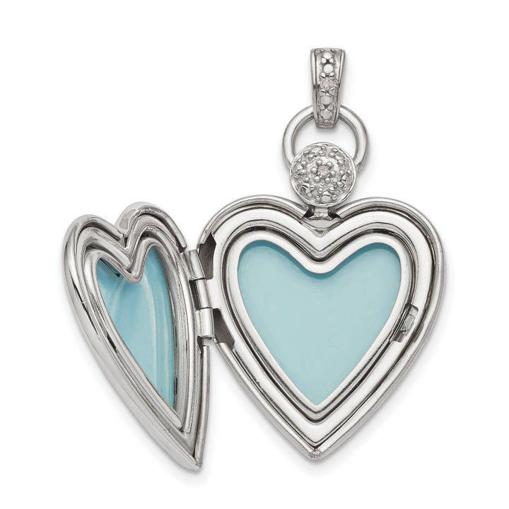 Sterling Silver Rhodium-plate 21mm Heart Dia. Accent diamond cut Satin Locket