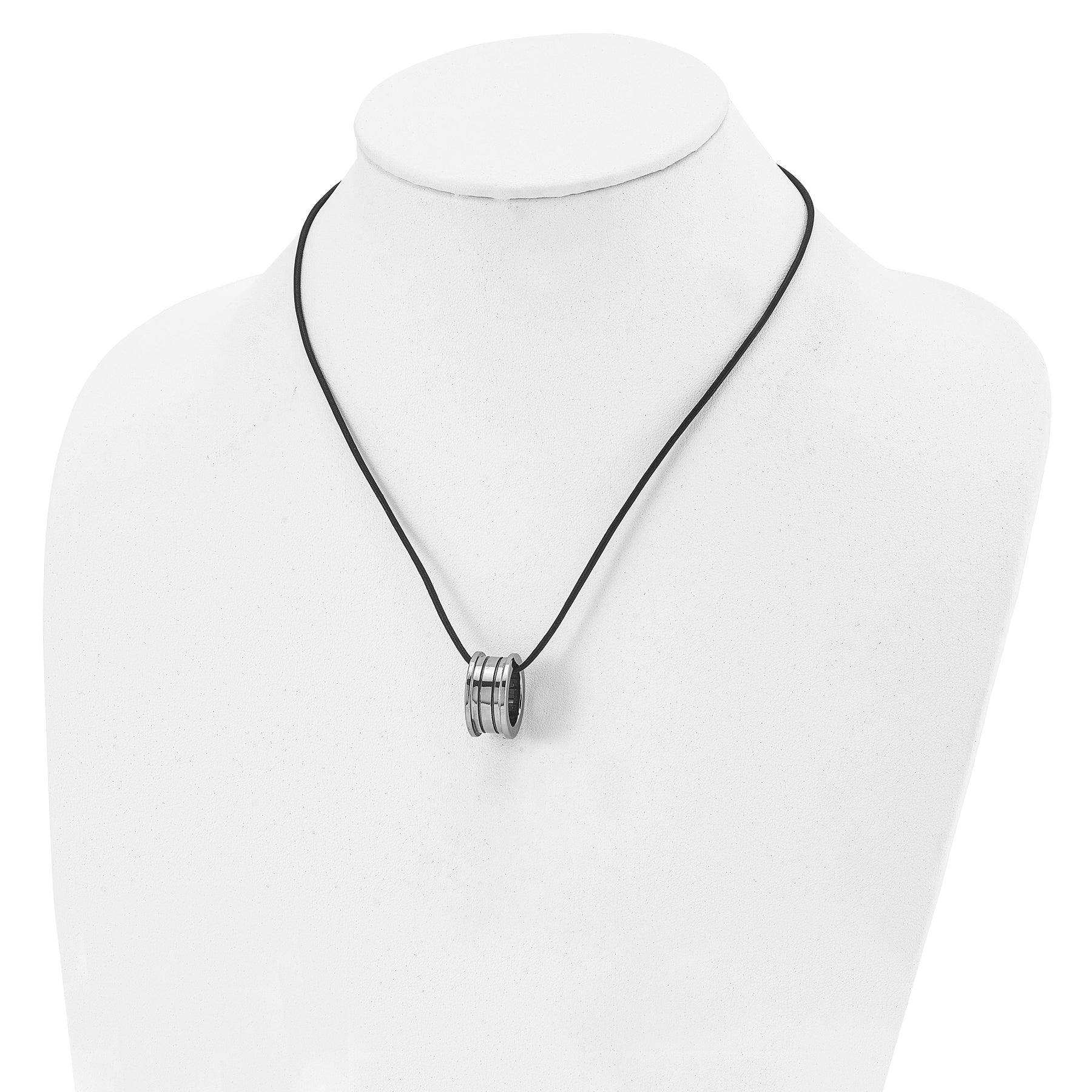 The chain length of the necklace is 18 inches, providing the perfect length to showcase the pendant or wear on its own for a chic look. Whether you're dressing up for a special event or simply adding a touch of flair to your everyday outfit, this Tungsten Polished Leather Cord Necklace is the perfect choice.
