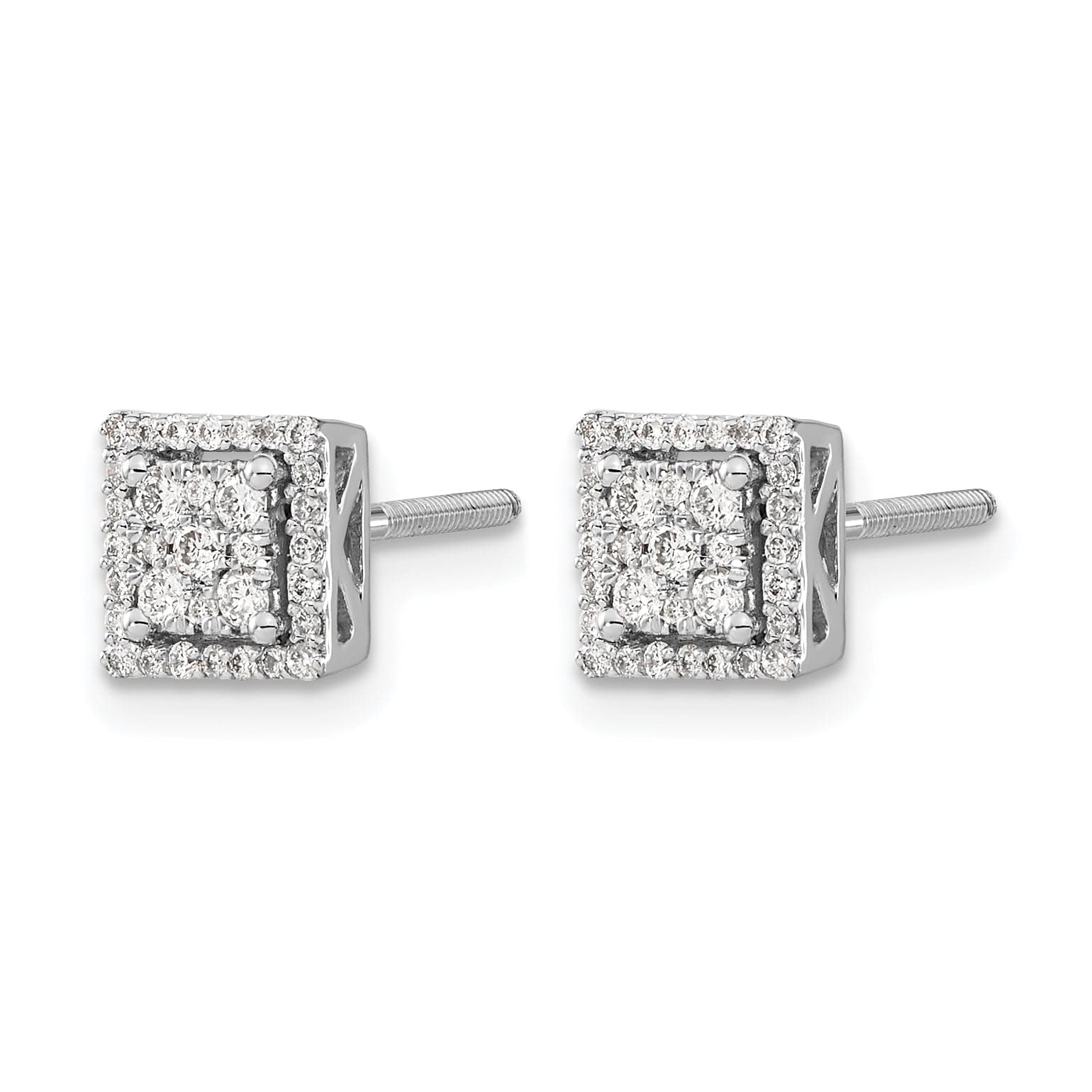 Eleve a sua elegância com os nossos Brincos de Pino com Parafuso Quadrados em Ouro Branco 14K com Aglomerado de Diamantes de 1/3 CT. Fabricados em ouro branco maciço 14K com acabamento polido e realçados por banho de ródio, estes deslumbrantes brincos apresentam um aglomerado cuidadosamente disposto de dez diamantes cintilantes, totalizando 1/3 de quilate. Com um peso de apenas 1,46 gramas e um tamanho compacto de 7 mm x 7 mm, proporcionam um complemento confortável e elegante a qualquer coleção de joalharia. Perfeitos tanto para o uso diário como para ocasiões especiais, estes brincos de estilo botão foram concebidos para causar uma impressão duradoura.