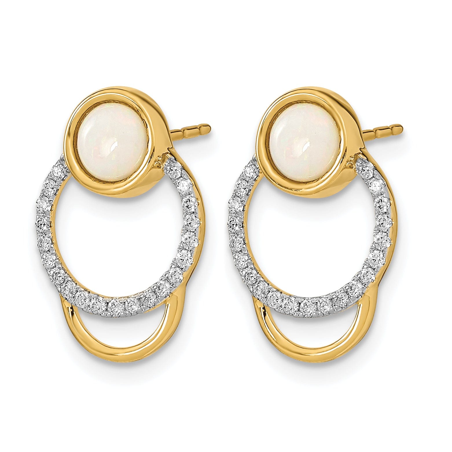 Realce a sua elegância com estes deslumbrantes brincos de argola polida em Ouro Amarelo 14k, com diamantes cintilantes de 1/5 de quilate e opalas cativantes. Fabricados em ouro amarelo maciço 14K, estes brincos leves (2,28 gramas) combinam durabilidade com um design sofisticado. Perfeitos para qualquer ocasião, acrescentam um toque de luxo à sua coleção de joalharia.