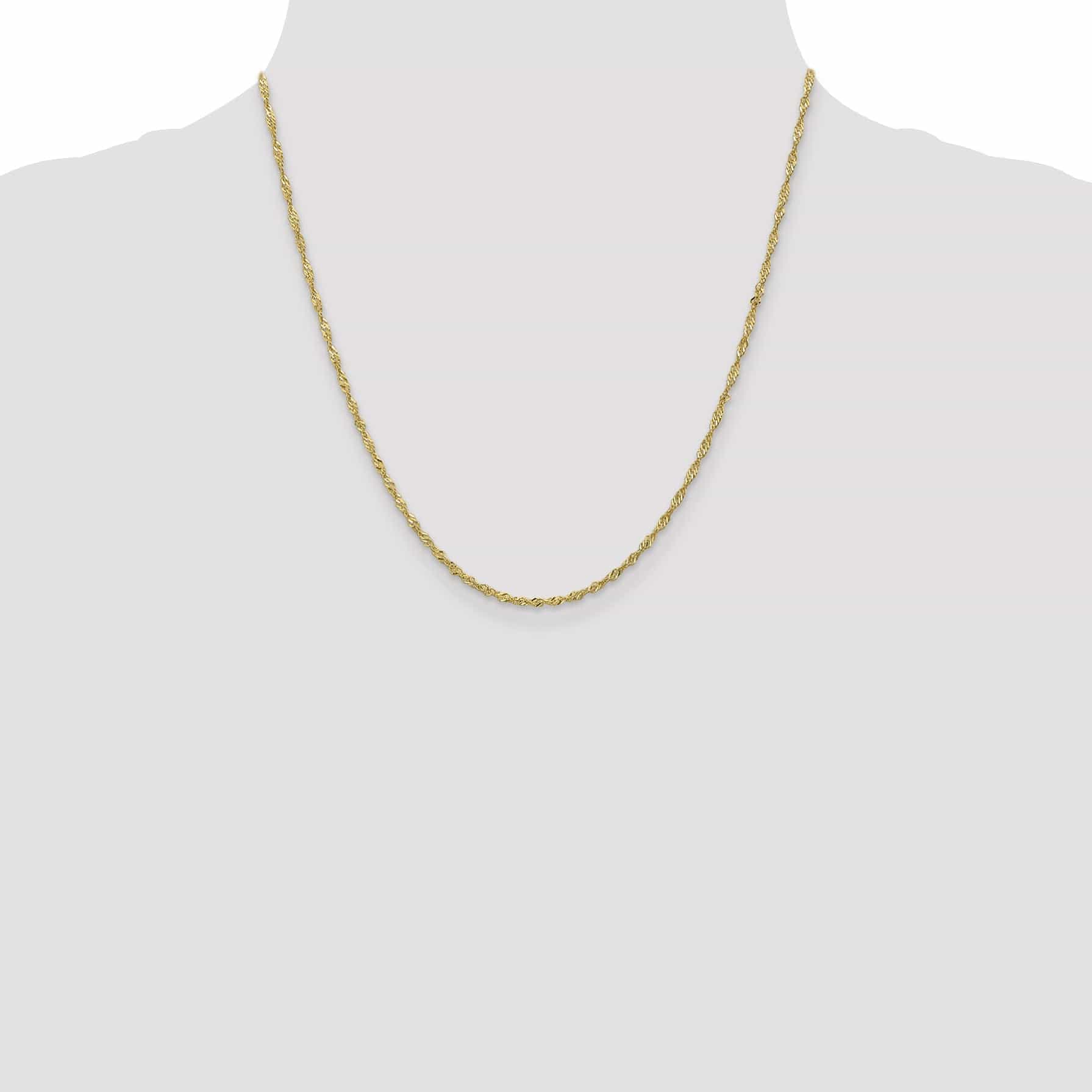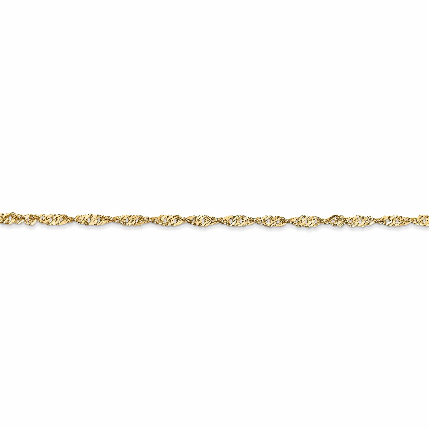 Apresentamos a requintada corrente Singapore Sparkle de 10k ouro amarelo com 1,7 mm de Leslie, uma peça deslumbrante que combina na perfeição elegância e sofisticação. Fabricada em ouro amarelo 10k de alta qualidade, esta corrente apresenta uma largura delicada de 1,7 mm, ideal para acrescentar um toque de glamour a qualquer conjunto.