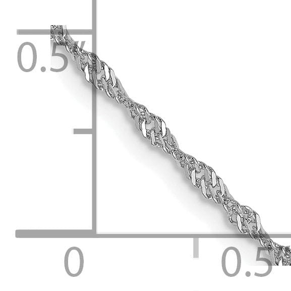 Renove a sua coleção de joalharia com a nossa requintada corrente Singapura de 1,3 mm em Ouro Branco 14K e destaque-se onde quer que vá. Elegante, versátil e naturalmente sofisticada, esta corrente é um verdadeiro essencial no seu guarda-roupa.