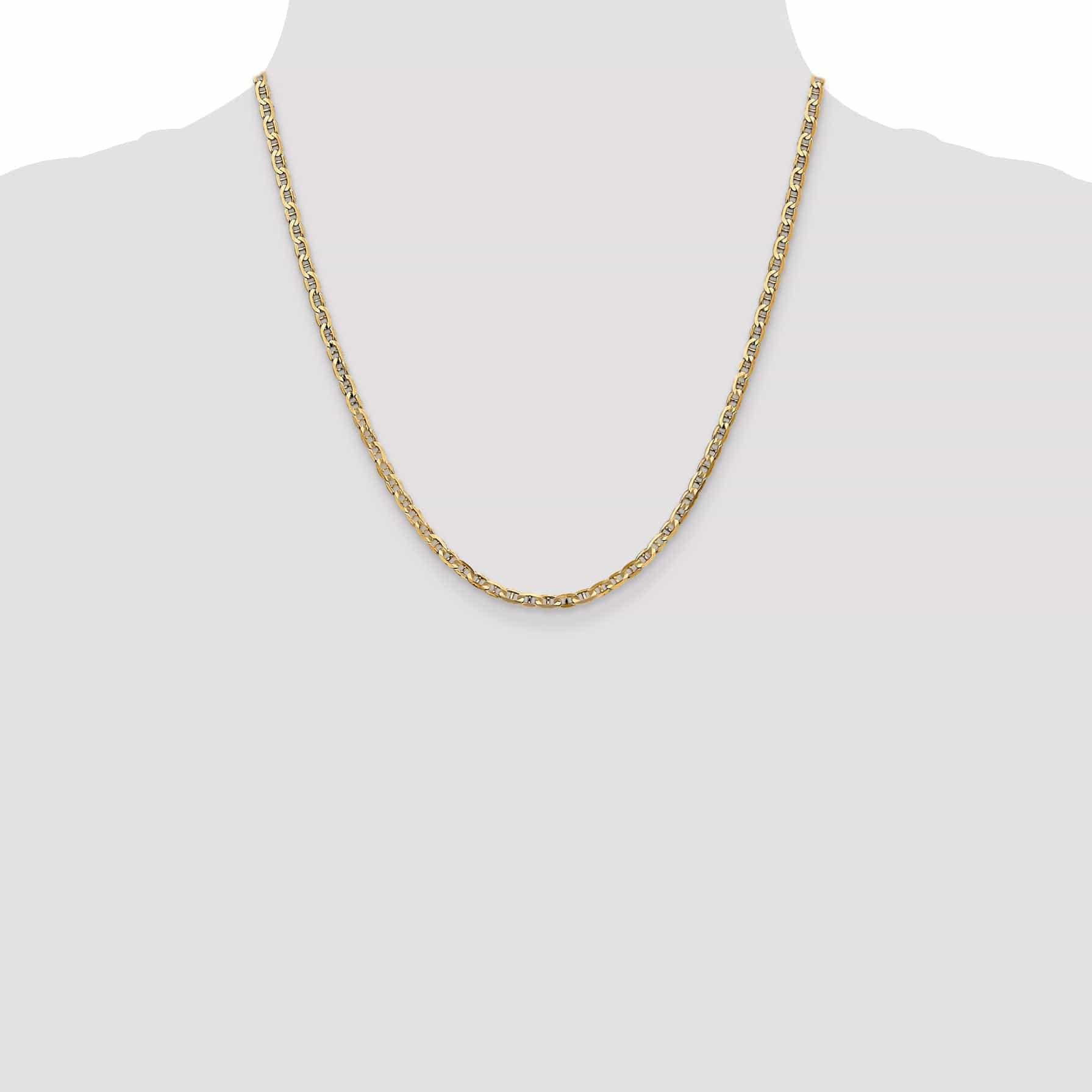 A espessura de 3mm da corrente confere-lhe um peso e sensação substanciais, enquanto a forma côncava acrescenta um toque único e moderno ao design clássico da corrente de âncora. O estilo de corrente de âncora é conhecido pela sua resistência e durabilidade, tornando este colar perfeito para uso diário.