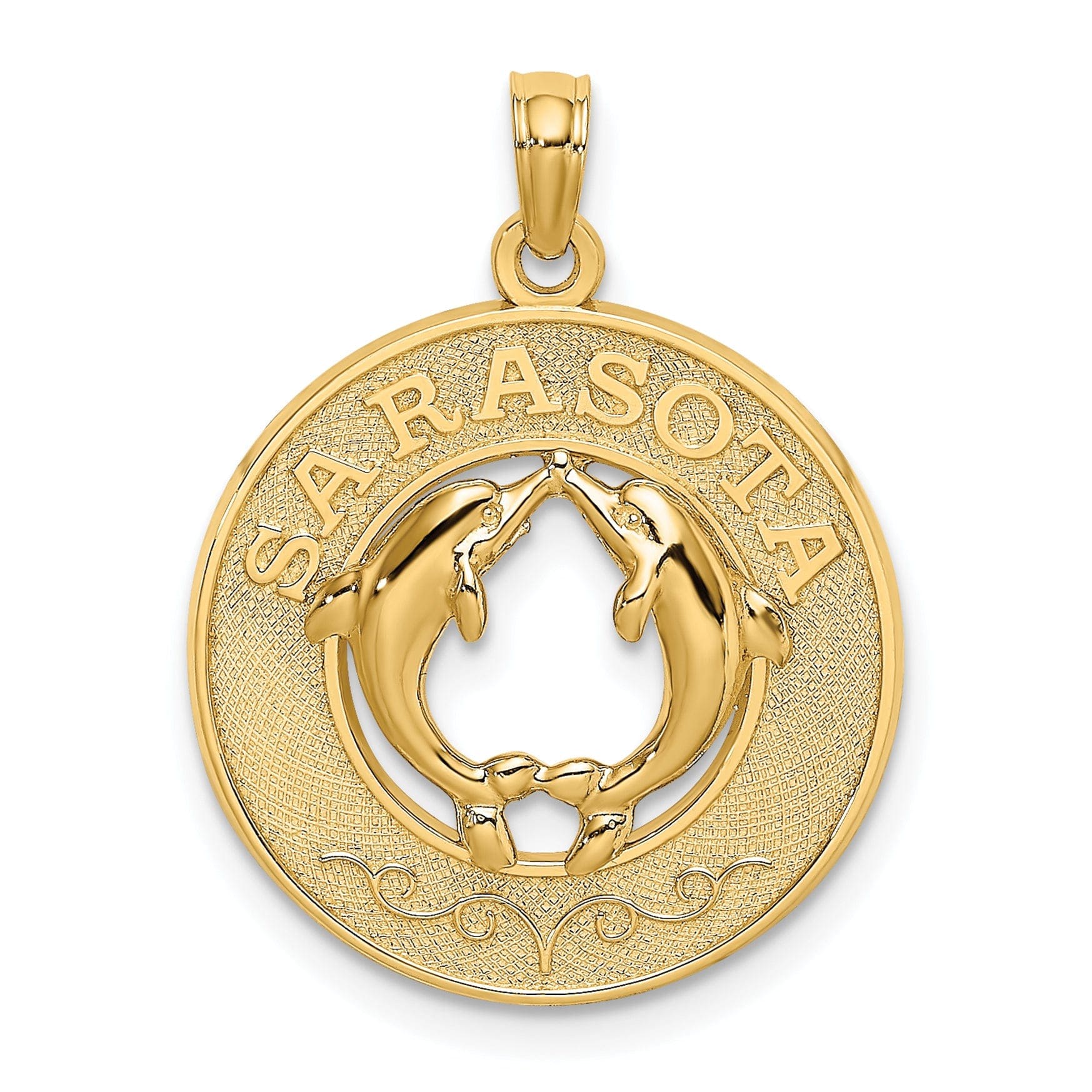 Hãy tự thưởng cho bản thân hoặc người thân món mặt dây chuyền charm SARASOTA Florida bằng vàng 14K màu vàng, hoàn thiện bóng và họa tiết tinh xảo này, để thêm nét duyên dáng của Florida vào bất kỳ trang phục nào. Đặt hàng ngay hôm nay và trải nghiệm vẻ đẹp cùng sự thanh lịch của tác phẩm độc đáo này.