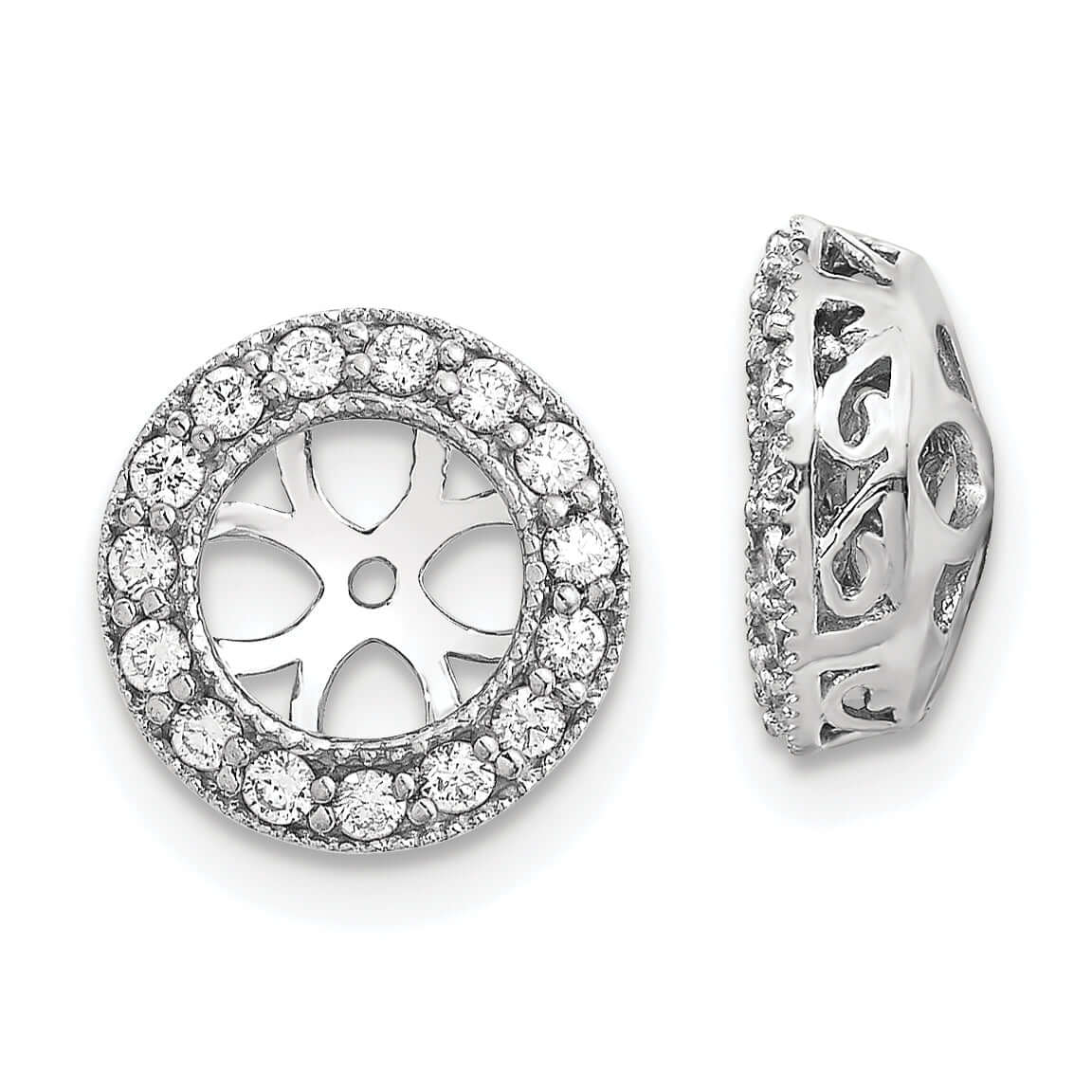 Nâng tầm bộ sưu tập trang sức của bạn với bộ áo bông tai hình vòng tròn kim cương VS 1/3 CT bằng vàng trắng 14k tuyệt đẹp này. Được chế tác từ vàng trắng 14K nguyên khối với bề mặt bóng và mạ rhodium, bộ áo bông tai này có 30 viên kim cương VS lấp lánh, làm nổi bật hoàn hảo những chiếc bông tai đinh yêu thích của bạn. Với thiết kế nhẹ chỉ 1,45 gram và hình dáng tròn thanh lịch, chúng mang đến vẻ duyên dáng và linh hoạt cho bất kỳ phong cách nào. Hoàn hảo để làm đẹp cho phong cách hàng ngày hoặc phối hợp với trang phục cho những dịp đặc biệt.