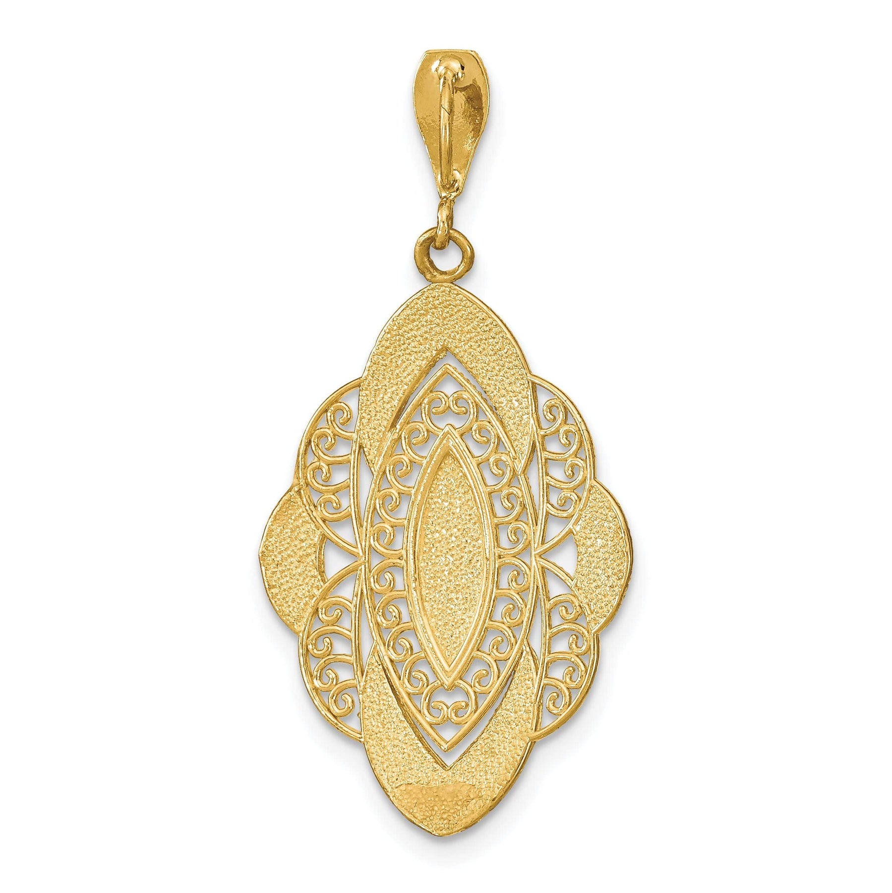 Kết cấu chạm khắc kim cương đẹp mắt trên mặt dây chuyền tạo nên ánh lấp lánh độc đáo bắt sáng tuyệt vời, làm cho nó trở thành phụ kiện hoàn hảo dành cho những ai trân trọng sự tinh xảo trong chế tác. Hoa văn filigree thể hiện các chi tiết tinh vi vừa mang nét cổ điển vừa hiện đại, tạo nên vẻ ngoài thanh nhã chắc chắn sẽ thu hút ánh nhìn.
