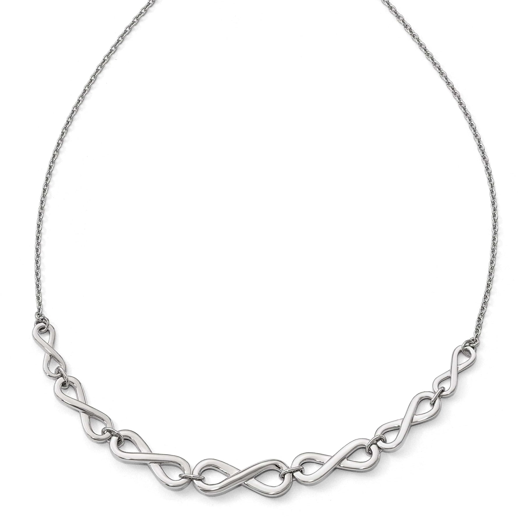 高品质的工艺与精细的细节使这款项链成为您珠宝收藏中不可或缺的珍品。无论日常佩戴还是特殊场合,这款925纯银抛光无限项链都是一件美丽且富有意义的配饰,完美衬托任何服装。犒赏自己或赠予特别的人,让无限符号时刻提醒您生命中无限的可能与联系。