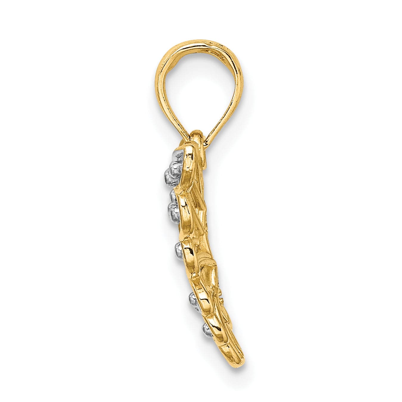 每一处细节均体现匠心独运,包括精心设计的吊环,长5毫米,宽4.5毫米,确保吊坠与您喜爱的链条或项链完美搭配,悬挂自然。14K金的纯度保证了奢华质感,同时兼顾强度与持久性。